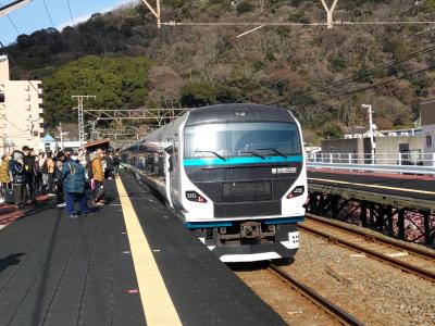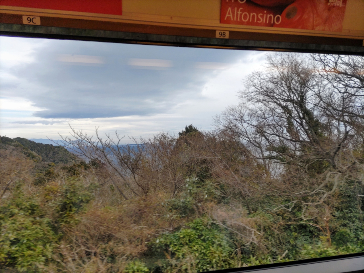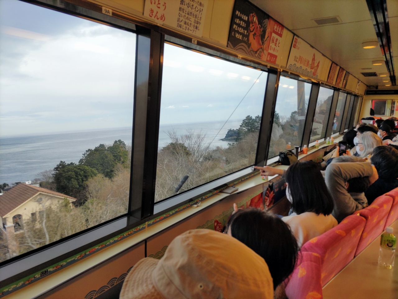 伊豆急行線は伊東駅と下田駅を結ぶ私鉄であるが、ほとんどの特急は東京からJR線を経て下田まで走っている。進行方向左側には、車窓から東伊豆の町々や相模湾、伊豆大島が見えてとても綺麗だ。伊東駅から偶然乗車した特急「踊り子号」は、伊東駅から先が普通電車になっており(ラッキー!)、展望席に座って東伊豆の景色をしばし楽しんだ。