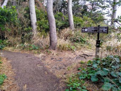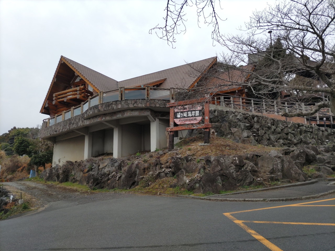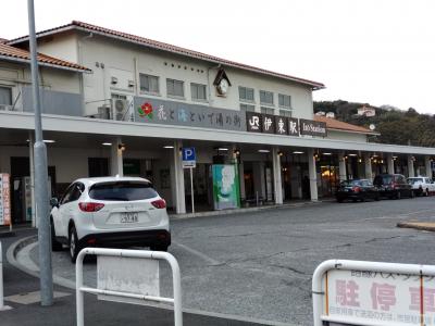 伊豆急伊東駅から普通電車に乗ること20分あまり、城ケ崎海岸ハイキングのため城ケ崎海岸駅に降りた。小さな無人駅(スイカ等は使用可能)で、トイレはあるが売店はない。改札口を出て左にコインロッカーが設置されている。駅舎はログハウスであり、高原のムードがある。駅を出て緩やかな下り坂、別荘地内を30分あまり歩いて、門脇駐車場に着き、城ケ崎海岸ハイキングをスタートした。蓮着寺付近から海岸駅までの帰りの約2kmは登り坂で、歩き疲れた体には大変だった。