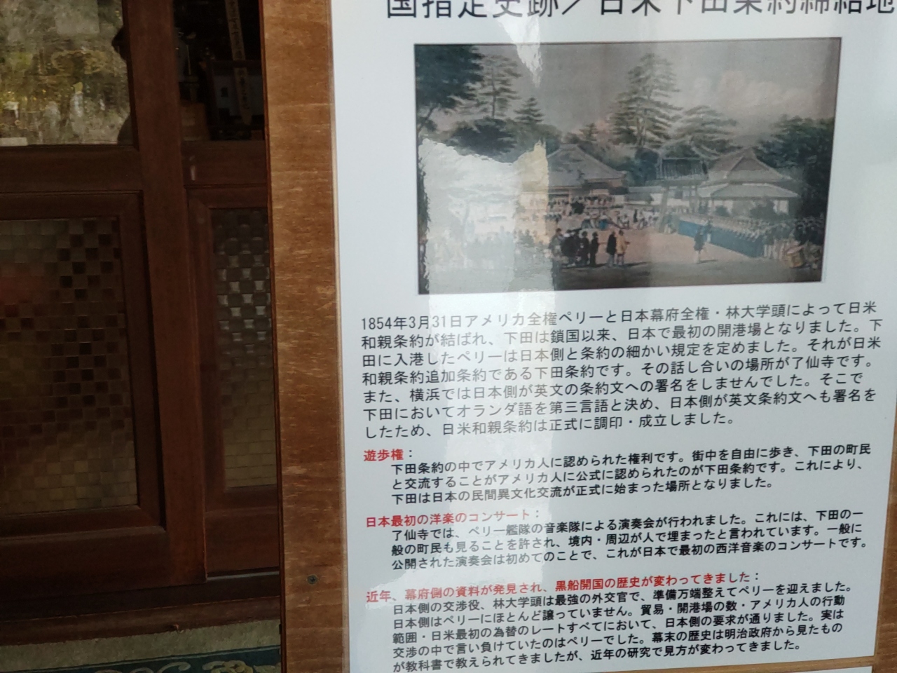 下田条約が調印された国指定の史跡。本堂横には洞窟遺跡がある。