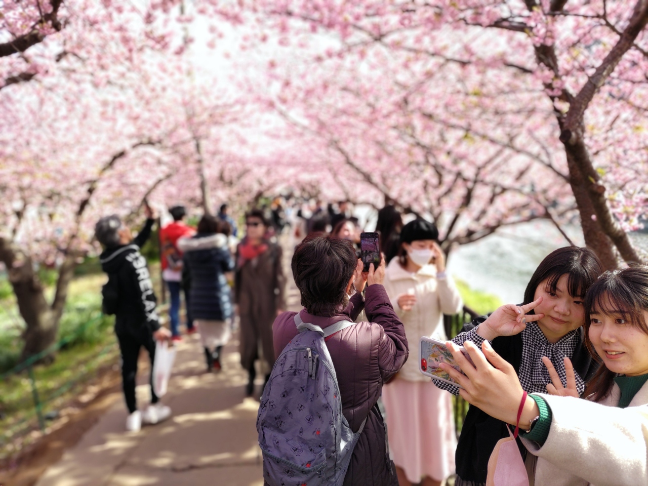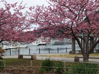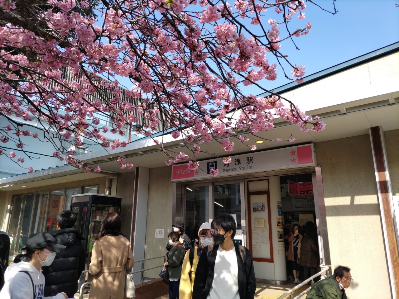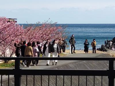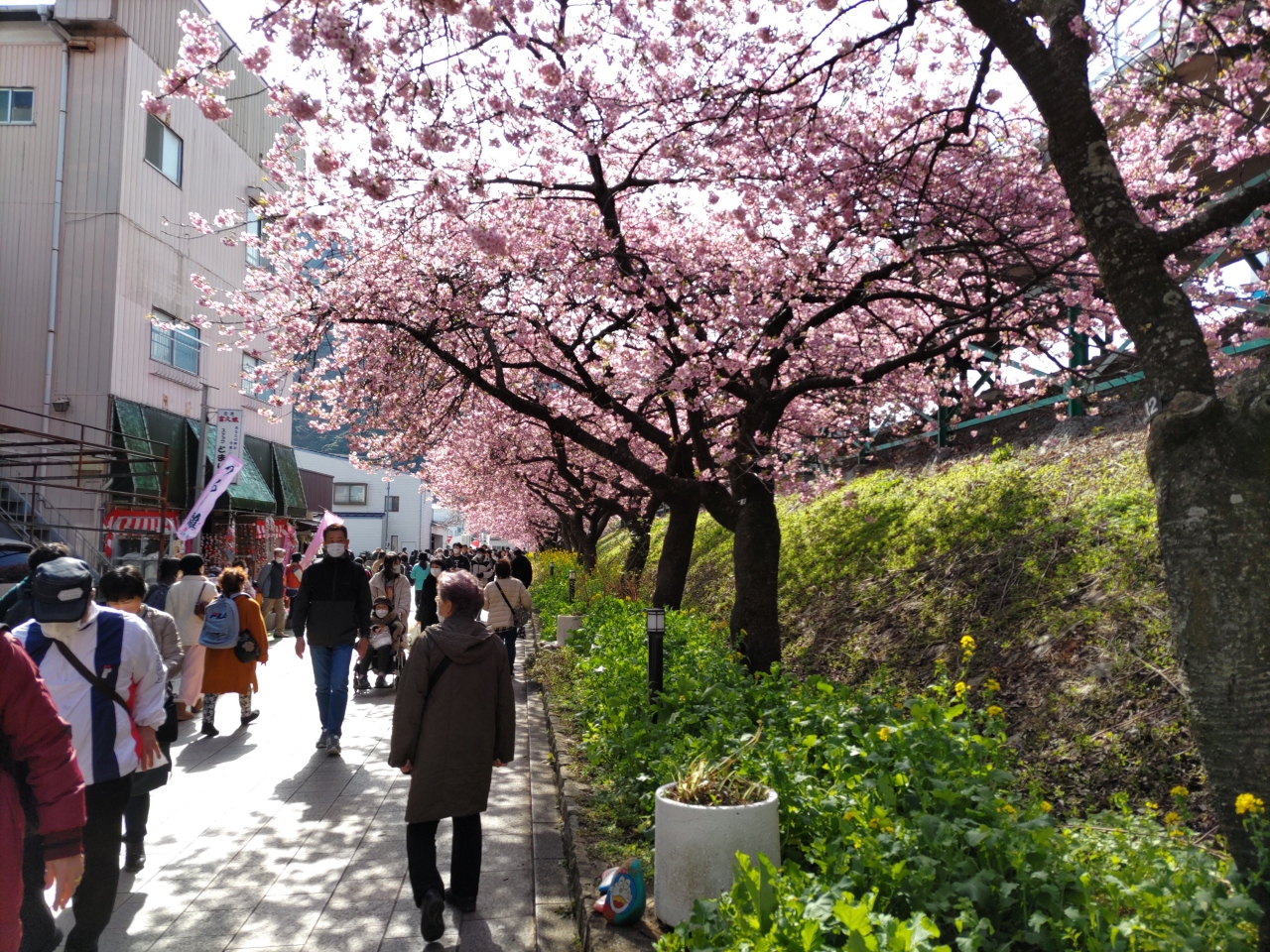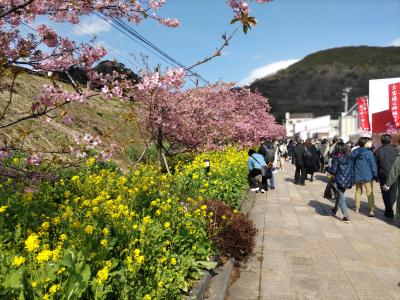 - 河津桜まつり見学の人で混んでいた。