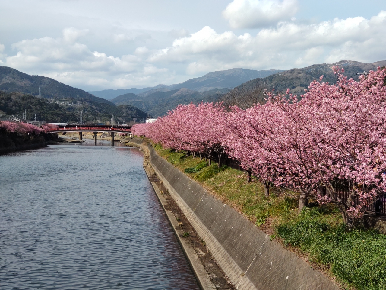 - 河津駅から南に200m、さらに河津川沿いに桜並木