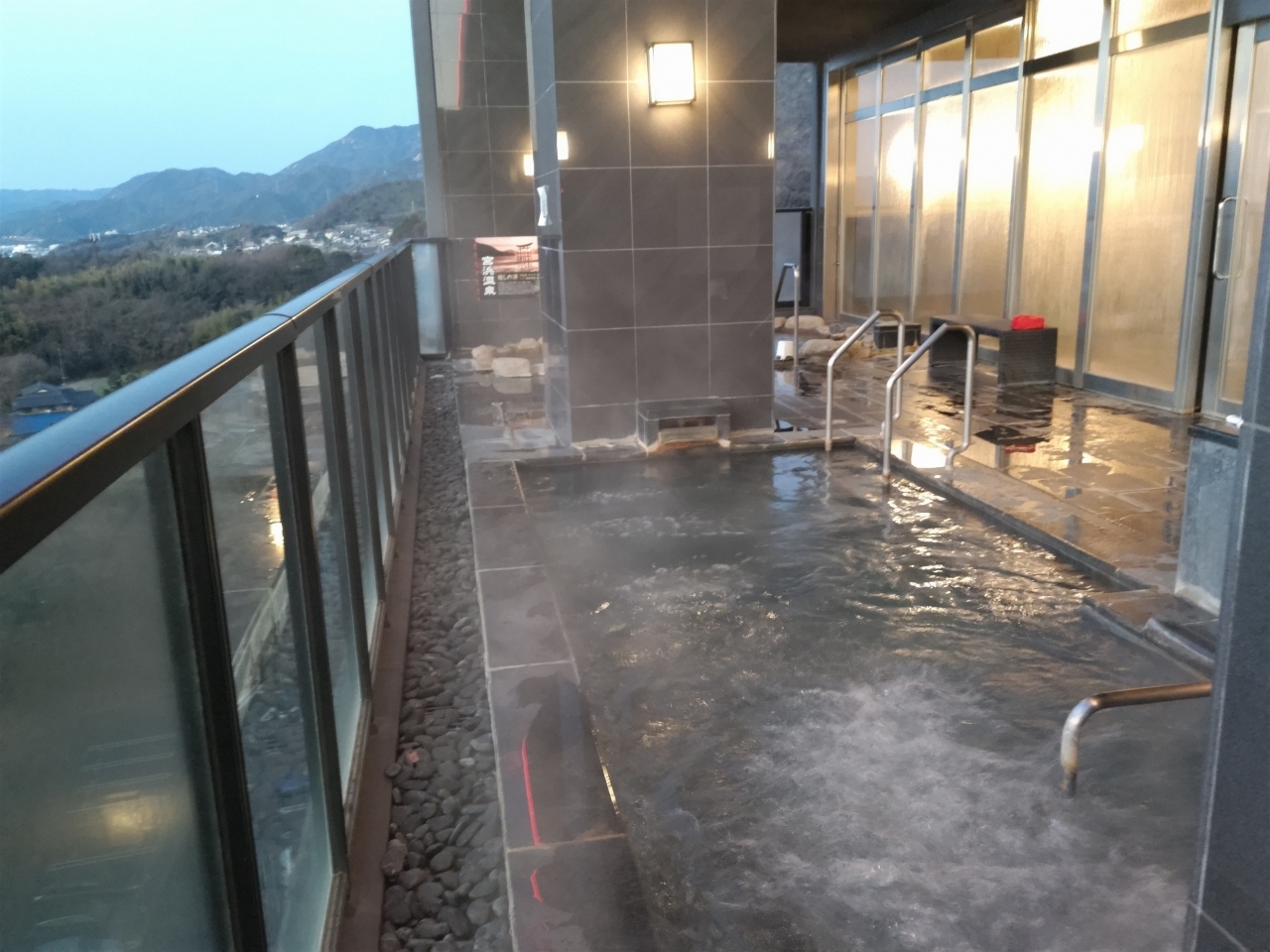 2月初旬、宮島の対岸の高台にある宮浜温泉に泊まった。客室も綺麗で広く、デッキからは宮島と内海が見える。各室に丸い浴槽の露天風呂があるが、大浴場の露天風呂に入って眼下の瀬戸内海と宮島を見ながら、ゆっくりとした。サウナもあり、朝から入浴可能である。夕食バイキングの料理も充実して美味しかった。ただ、人気の宿らしく、平日にもかかわらず、レストランは混雑していて少し狭い感じがした。2食付きで約1万円だったが、料金の割には中身が充実した宿で、満足度は非常に高い宿だ。是非また利用したい!