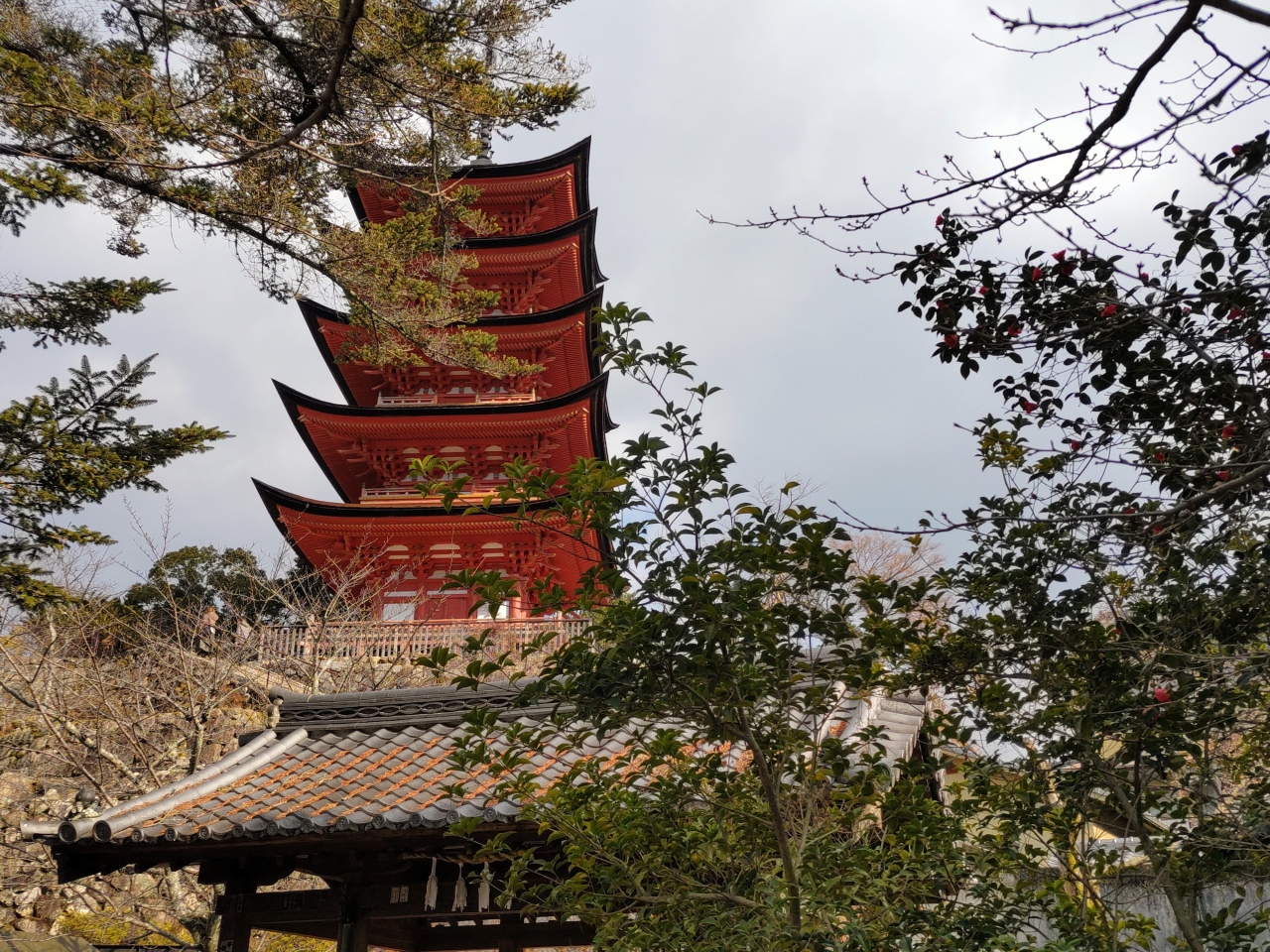 - 厳島神社から徒歩1時間あまり。ロープウエイ駅から約20分。