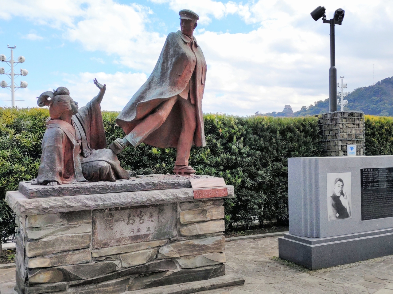 JR熱海駅を降りて、平和通り商店街を、さらに車道に沿って南に下ること約10分で、熱海サンビーチの北東にあるお宮の松、貫一・お宮の像、金色夜叉の碑、尾崎紅葉記念碑にたどり着く。50年ぶりに訪れたが、「金色夜叉」を知らない者も多く、碑の前で写真を撮っているのはほとんど年配者だった。熱海駅までのかえりは、坂道を登ることになるので、約20分は歩かなくてはならない(結構しんどい)。バス停「お宮の松」が目の前にあるので、熱海駅行のバスを利用するのもよい。