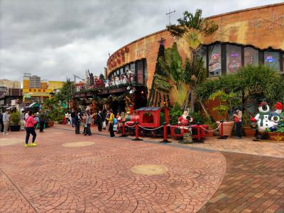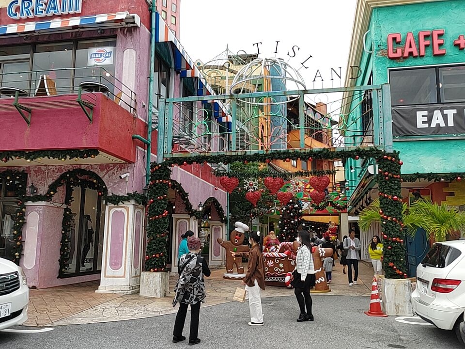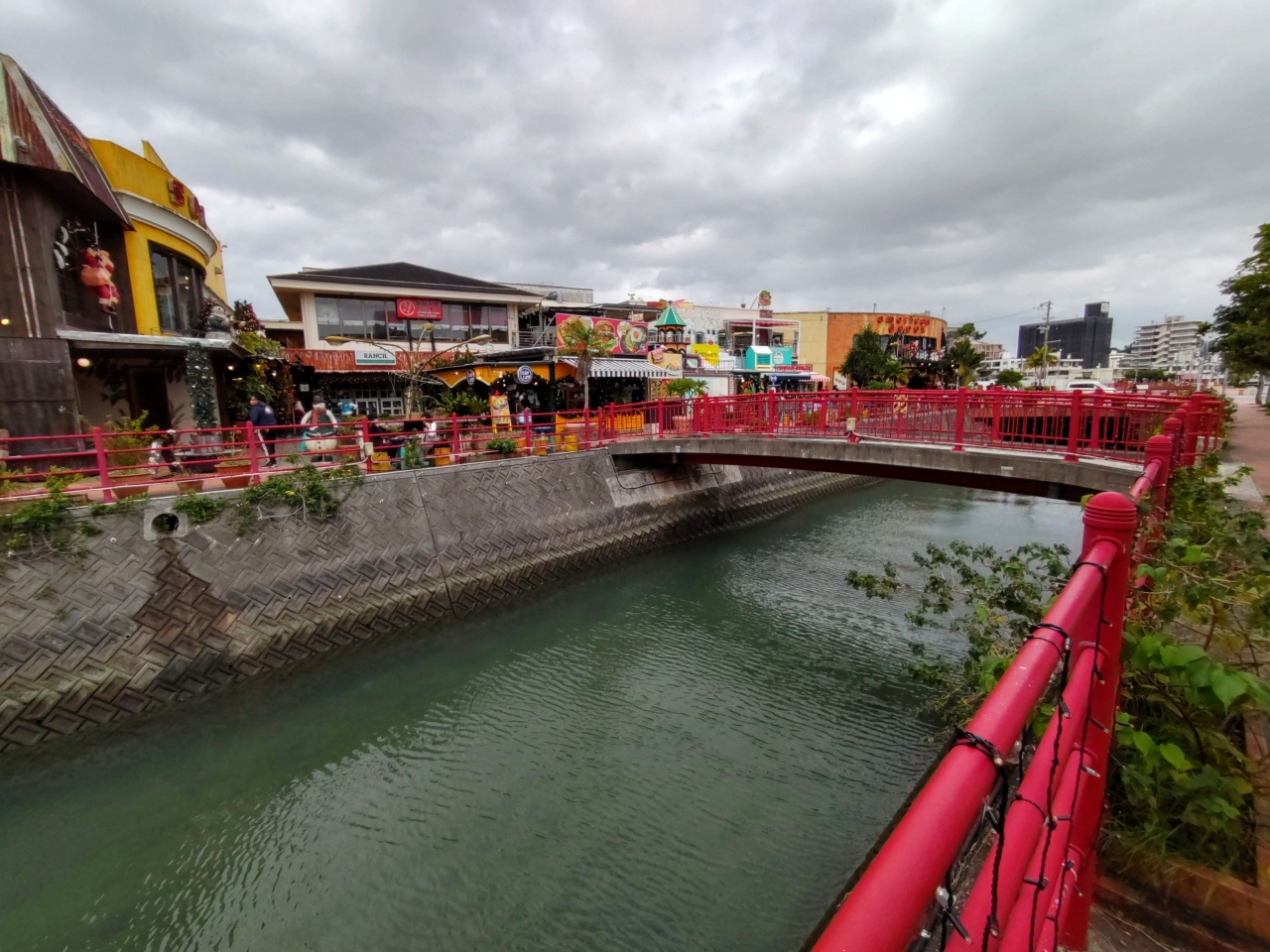 北谷町美浜にあるアメリカンビレッジは、アメリカの雰囲気が漂うショッピング、エンターテイメントエリアである。米軍の飛行場跡地に隣接する海岸が埋め立てられ造成されたものである。ビレッジ内に駐車場はあるが、今回は隣接するイオンモール側の駐車場に車を停めて散策した。多くの修学旅行生が、ショッピングなどを楽しんでいた。ビレッジ内にトイレはいくつかあるが、来客数に比べて少なく場所が分かりにくいものが多い。観光情報センター内のトイレを利用させてもらった。