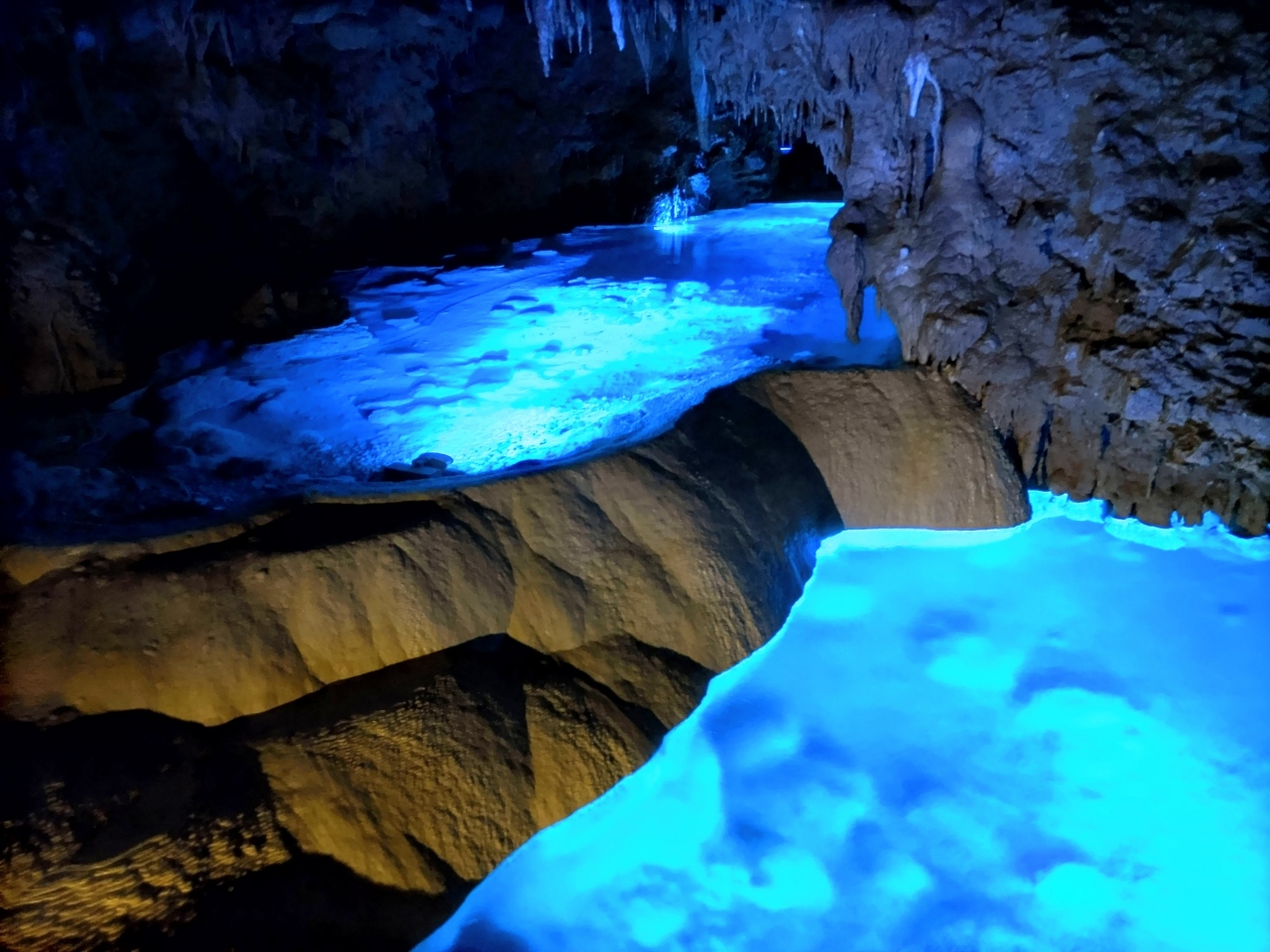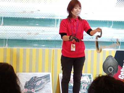 那覇市国際通り近くのホテルを9時に出発して、20分あまりで沖縄ワールドに到着した。入園して最初に鍾乳洞の玉泉洞に入った。20年ぶりの見学だったが記憶よりも長く、30分あまり神秘の世界を歩いた。山口県の秋芳洞に比べて水温が高く、石筍の発達は速いという。玉泉洞を出て、植物園、琉球王国城下町を歩き、エイサーショーを見学した。太鼓をたたきながらの舞いはすごい迫力だ。ハブやコプラ、マングースのショーも見た。最後に、ハブ植物公園で白いニシキヘビをはじめ様々な爬虫類を観察した。あっという間の2時間だった。