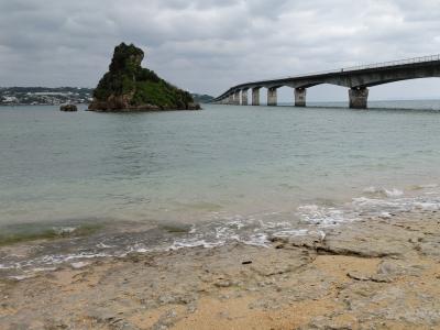 北部沖縄旅行の定番、美ら海水族館と古宇利島を訪れた。今帰仁から国道505号を東に走り、景色の良いワルミ大橋を渡り、左折して古宇利島に向かった。古宇利大橋の手前の駐車場に車を停め(大型車は駐車不可)、浜に降りて橋を眺めた。古宇利大橋を車で渡るのは爽快である。あいにくの曇り空だったが、海は青くとても綺麗だ。オーシャンタワーに行ったが、駐車場がいっぱいで入場をあきらめた。オーシャンタワーには貝の博物館もあるが、入場料1000円はやや高い気がする。その後、周囲8㎞の古宇利島一周のドライブを楽しんだ。