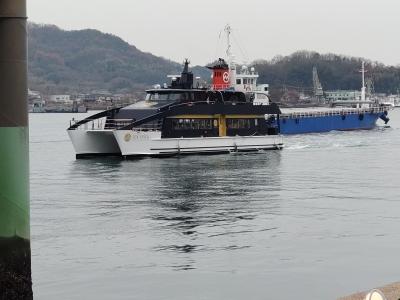 瀬戸内海汽船の観光高速船「シースピカ」は、通常は広島港と三原港を約半日かけて運行している。途中、下蒲刈や大久野島、瀬戸田などに寄港(コースによって寄港地が異なる)して、その地を観光できる。この度は、12月のモニターツアーに参加した。午後1時過ぎに尾道港を出港して、船は西に向かって進んだ。途中、大崎上島の北を通り、下蒲刈三之瀬港に寄港して1時間あまりこの地を散策した。音戸の瀬戸を通り、海上自衛隊呉基地の艦船をまじかに見て、広島宇品港に午後5時頃到着した。風光明媚な瀬戸の多島美を楽しんだ。残念だったのは、座席(指定)が中央の1番前で、船外の景色が全く見えなかったこと(大型スクリーンはある)、2階デッキ(自由席)は小雨混じりの寒風が吹いていたことである。