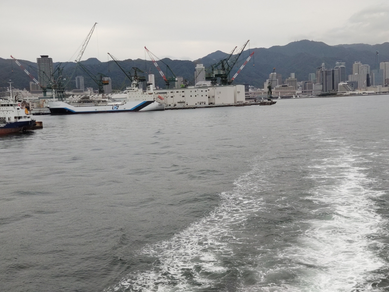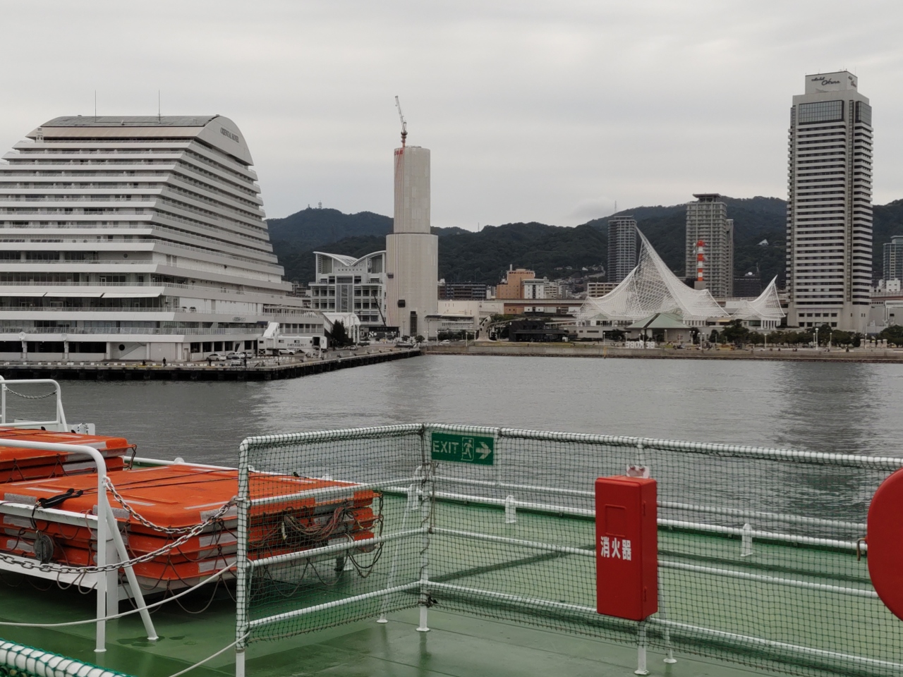 阪神神戸三宮駅前からポートループバスに乗り、かもめりあ(神戸港観光船のりば)で下車した。観光船のりばから、神戸港を一周する「ロイヤルプリンセス号」が毎時45分に出港している。船上のスカイデッキから神戸の町並みや三菱重工業の工場などをのぞみながら約40分の船旅を楽しんだ。曇り空のため期待していたほど海面は綺麗ではなかった。乗船料はシルバーで1200円である。