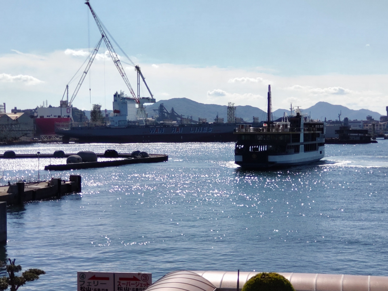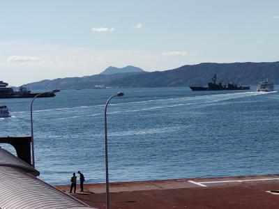 戦艦大和が製造され、出航したかつての軍港、呉港。今は松山・広島方面への高速艇やフェリー、対岸の江田島を結ぶフェリーが往復している。造船所や海上自衛隊潜水艦基地などもあり、呉港は賑わっている。西日本豪雨の際、陸路が完全に遮断され、陸の孤島となった呉市への唯一の通勤・通学手段として呉港は大きな役割をはたした。10月下旬の好天の日、呉港を訪れた。青い空、青い海、陽光の中を船舶が行き交っている。ベンチに座って、港を見ながら穏やかなひと時を過ごした。次回は、呉港遊覧船にのってみようと思う。