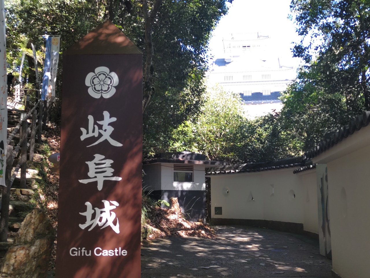 金華山山頂にある岐阜城の前身は、斉藤道三の居城稲葉山城である。織田信長が攻め取った後、改名して居城とした。天守閣からは、長良川や岐阜の町、さらに遠くに伊吹山も一望できる。ロープウエイ山頂駅から右側の山道を登って約10分である。途中の崖にはチャートの露頭があり、金華山がはるか昔の地質時代には深い海の底だったことがわかる。天守閣入館料は大人200円だが、シニアは無料である。天守閣の近くに小さな資料館があり、トリック写真撮影を楽しめる。