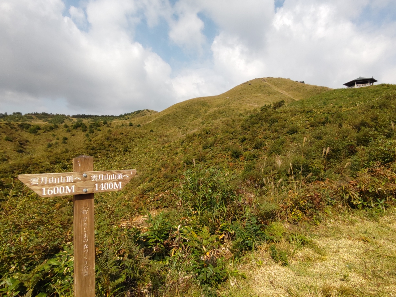 広島県・島根県境にある雲月山には毎年登っている。今年は、秋の雲月山に登った。国道186号線の北広島町川小田付近から県道を北に10㎞あまり走って、駐車場のある登山口に到着した。なだらかな山道を20分ほど歩いて、10分ほど急坂を登って頂上に着いた。島根県側は展望があまり良くないが、広島県側は開けてよく見え、天狗石山など西中国山地の眺望が楽しめる。遠くに島根県の三瓶山も見える。途中の道端ではリンドウなど秋の山野草が楽しめる。ウメバチソウが可愛い花を咲かせていた。マムシに遭遇することがあるので、注意が必要だ。なお、登山口の道標には、左右の案内があるが、右側の道がお薦めだ。左側の道は急な谷を下り、また登るので、時間も体力も必要であまりお薦めできない。