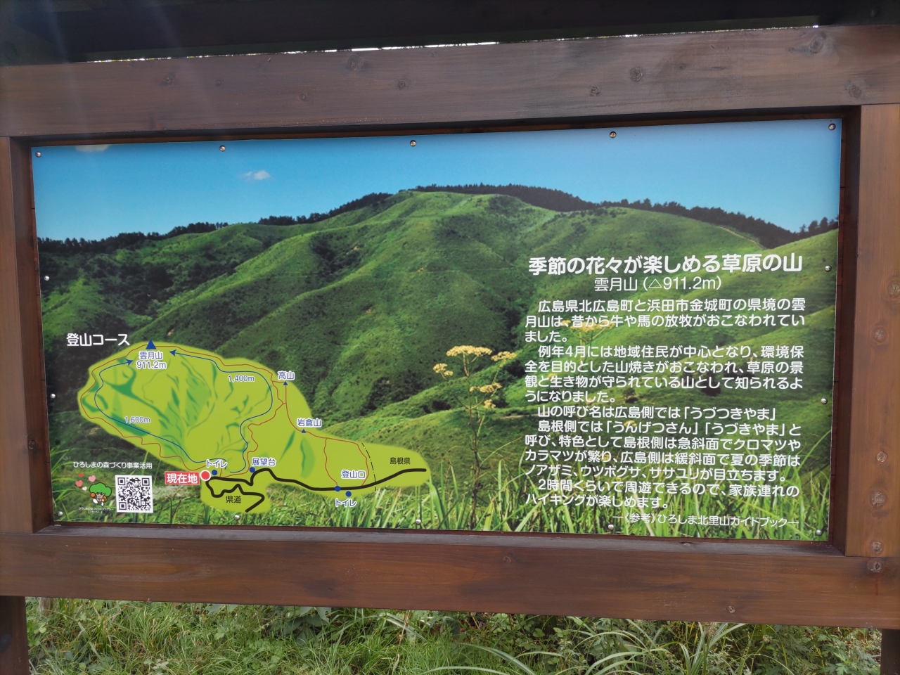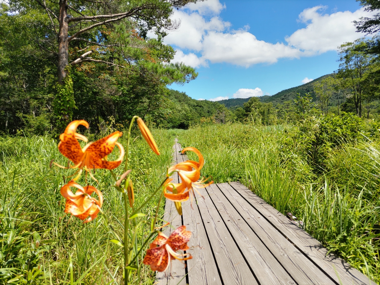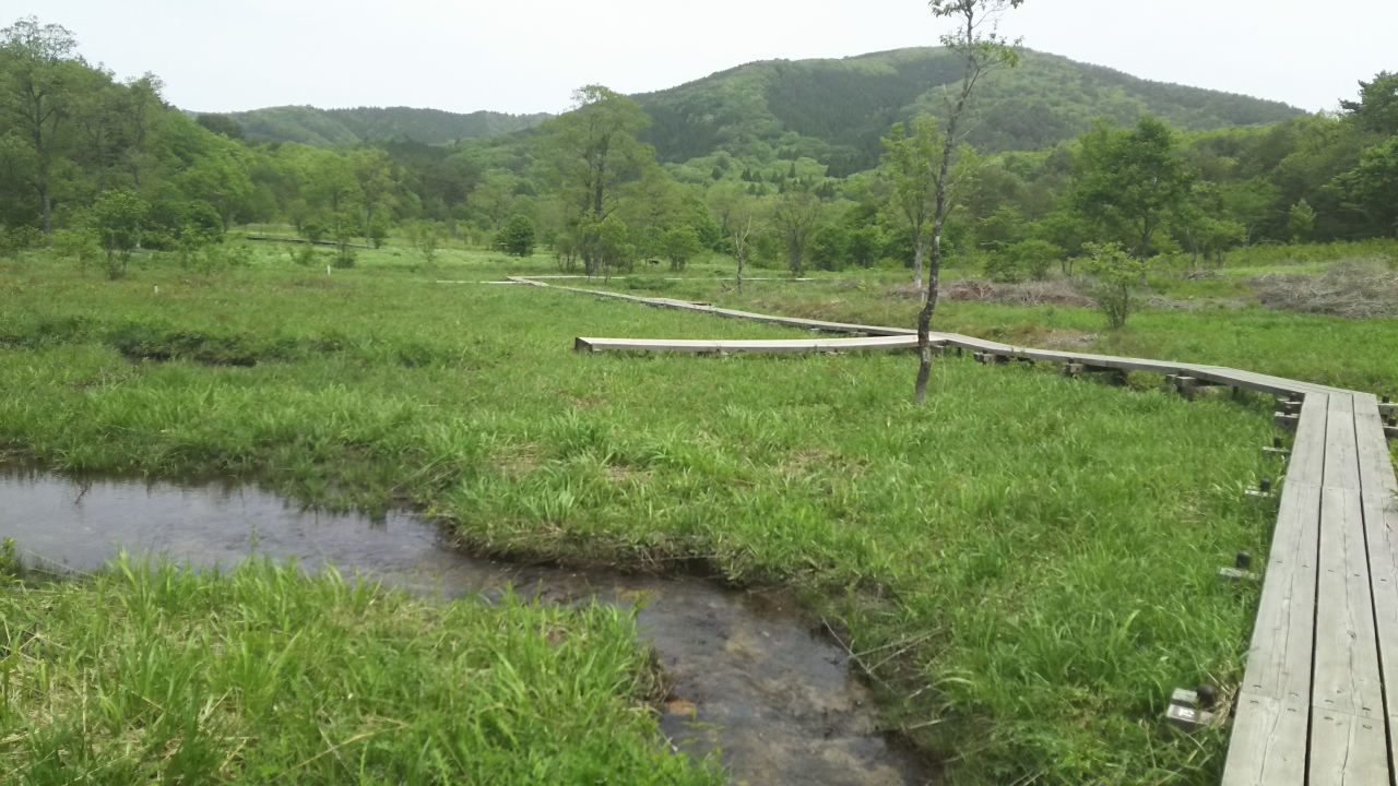 北広島町八幡の臥竜山山麓、かつて湿原が広がっていた地域が牧場となり、牧場閉鎖後荒地となっていたが、2002年頃から湿原再生の調査・工事が進められ、現在は「霧ヶ谷湿原」と命名され、木道や案内板が整備されている。年に10数回訪れているが、木道のほとりにはアザミやコオニユリなどの山野草が咲き、小鳥の声も聞こえ、高原のそよ風を受けながら歩くのはとても気持ち良い。近くに駐車スペースもあり、休日などには木道を歩く人の姿も多く見受けられる。高原の自然館までも徒歩約15分である。なお、冬は寒さが厳しく、2mあまりの積雪があることもあり、付近の車道は通行できない。