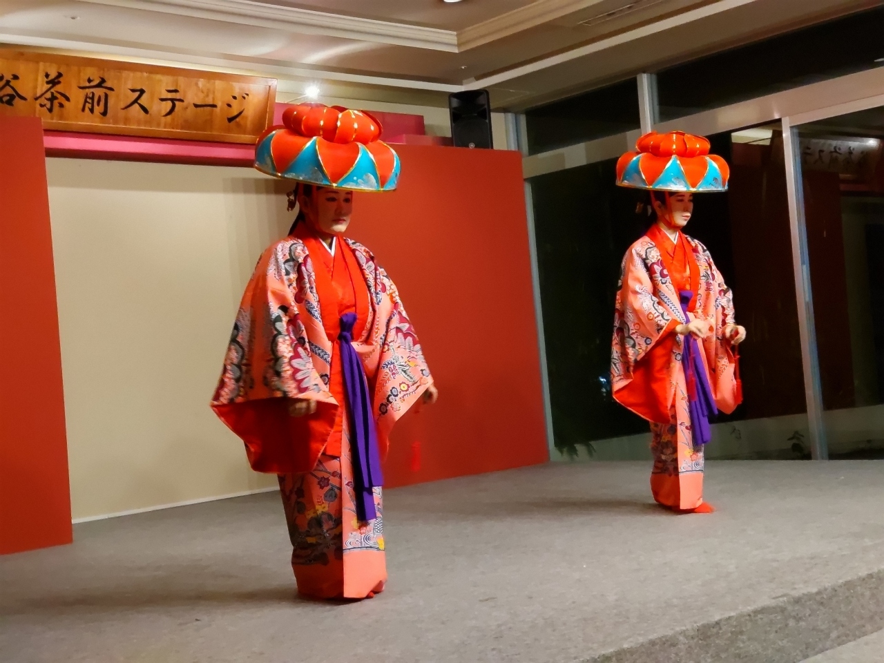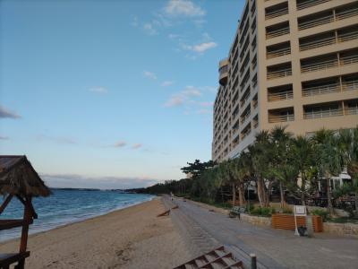 ホテル谷茶ベイは砂浜に面した10階建ての大きなリゾートホテルであり、今回は二度目の宿泊で2泊した。谷茶ベイホテルの専用サイトで予約したため、大浴場入浴券やプール利用券、スイーツバイキングなどいろいろな特典がついていた。2階がフロントのロビー階で、朝食レストラン「谷茶ベイ」やカフェ、1階がビーチ階であり、レストランや売店、プールなどがあり、直接海浜沿いの道に出ることができる。大浴場は2階であるが、1階に降りて専用通路を通っていくことになるので少々複雑である。夕食は1泊目はバーベキューバイキングレストラン、2泊目は洋中琉バイキングレストランでとった。料金はビールなどを含めていずれのレストランも同一である。朝食は品数も豊富で大変美味しかった。2階にあるステージでは毎晩2回の琉球舞踊・エイサーのステージがあり(無料)、初日の夕食後に観賞した。多くの修学旅行生(3~4校)や韓国プロ野球の選手たちも宿泊していた。気楽に楽しめるホテルだと思う。