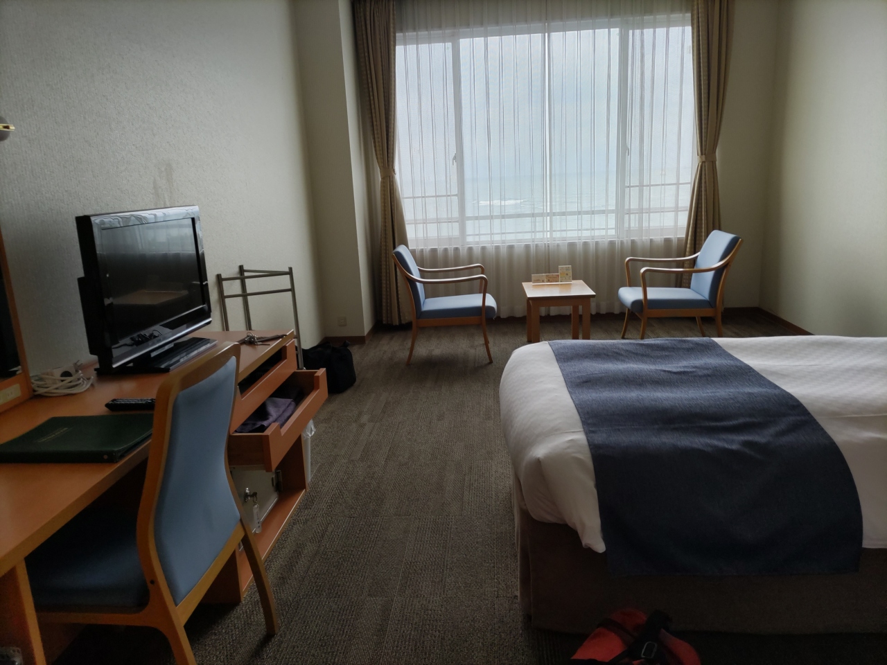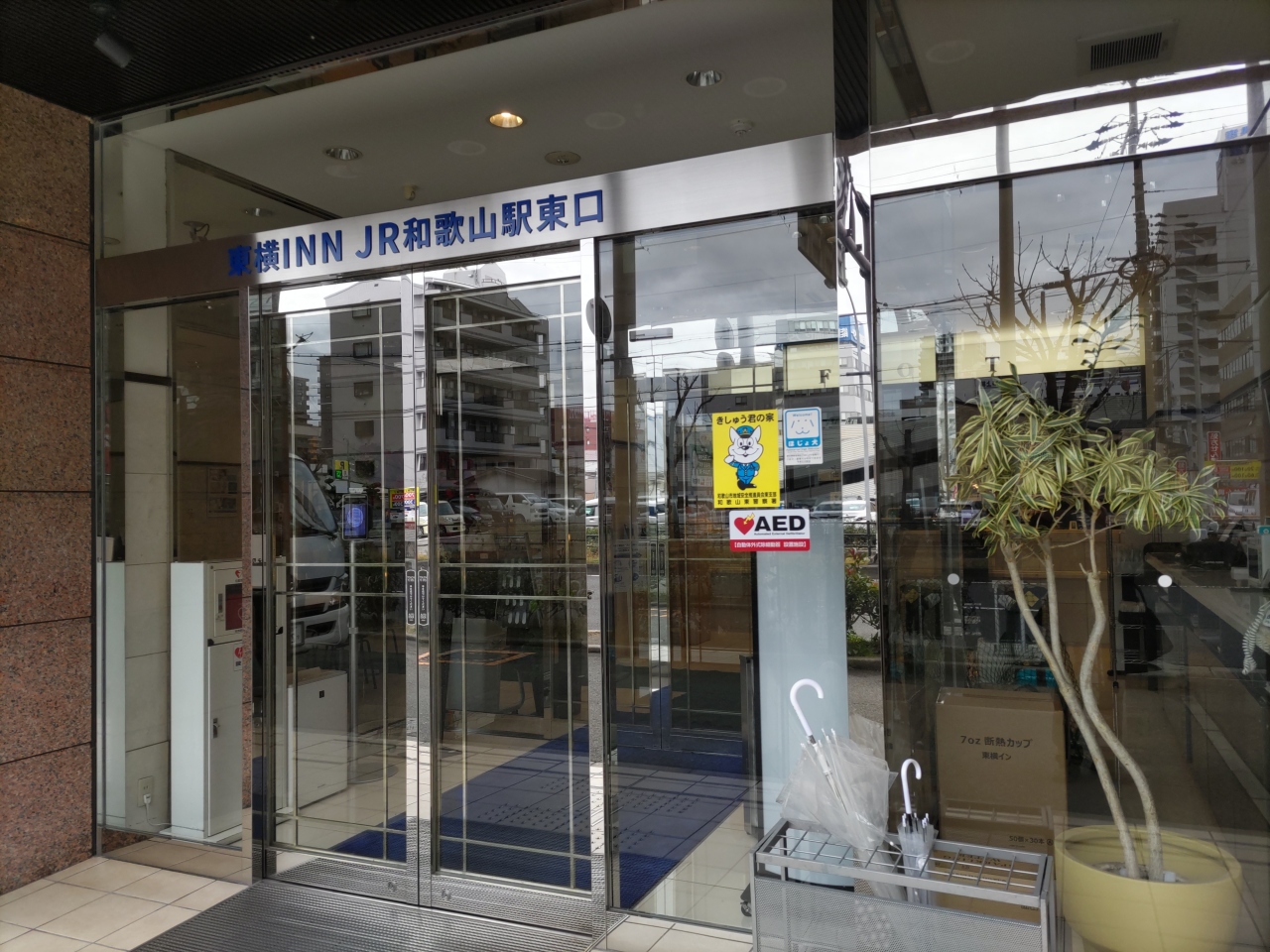 JR和歌山駅東口から徒歩約7分、繁華街のある駅の西口付近と違って居酒屋などはないが、コンビニは近くにある。駅の東西連絡通路(地下)を利用すれば、西口の駅ビルやデパート、レストランなどにも簡単に行ける。市内や周辺観光には便利なロケーションだ。建物が大きなビルに隣接していないので、どの部屋からも眺望は良い。早めにホテルに到着したので、「できれば上位階の部屋を」とリクエストすると、快く最上階13階の部屋にしてくれた。フロントスタッフの対応が非常に良い。2泊したが、朝食の料理の味付けは大変良く、初日の「タコ飯めし」は特に美味しかった。
