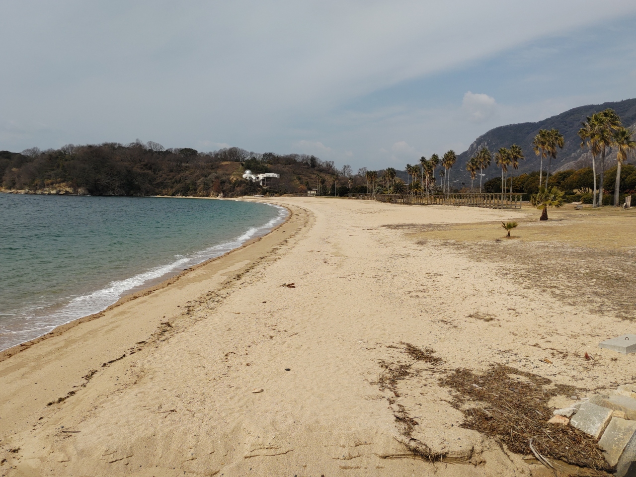 呉市蒲刈島の東部大浦町、豊島大橋のたもとから海岸沿いを瀬戸の海を見ながら約8㎞を、右回りに歩いた。左手に瀬戸の青い海、右手にはところどころにミカン畑がある。1時間弱で県民の浜に着いた。ここには宿泊施設があり、天体観測のためのドームもある。宿泊施設には修学旅行歓迎の横断幕も掲げられている。少し北に歩くと恋ヶ浜である。高校時代、この浜にテントを張って合宿、遠泳をしたことを思い出した。さらに20分あまり緩やかな坂の峠道を歩くと、大浦の集落である。春や秋の好天のときには絶好のウオーキングコースである。