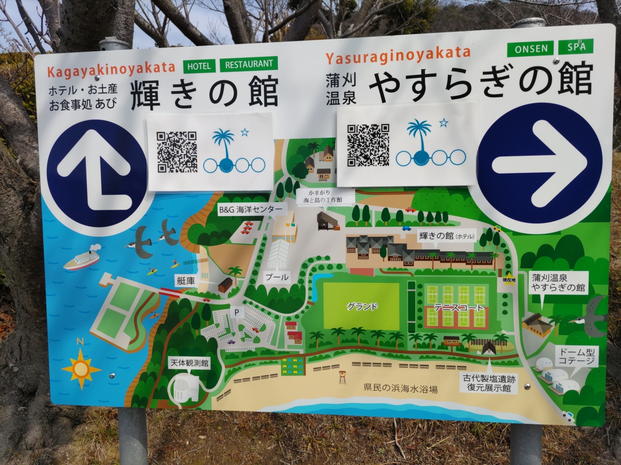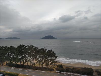 海の中道を西に走り、砂州の上にかかった橋を渡って陸繋島の志賀島に入ると、県道542号通称金印海道が島を一周している。右折して左回りに走っても、直進して右回りに走っても、休暇村は島の西端近くにあるので、ほぼ同じ10数分である。全室オーシャンビューで、玄界灘に沈む夕日の絶景を期待していたが、宿泊した日はあいにく曇天でそれは望めなかった。夕刻、広い温泉でゆっくりくつろいだ。露天風呂は源泉を加温したものだが、泉質は良いような気がして、潮騒を聞きながら入浴を楽しんだ。夕食の「玄界灘海鮮ビュッフェ」は、新鮮な魚介類が提供され、アルコールとともに美味しく頂いた。「九州湯めぐりプラン」と「オフピーク割」を適用したため、宿泊料金は通常よりも実質3000以上も安くなった。なお、今回は自家用車を利用して訪れたが、JR西戸崎駅や志賀島港からホテルの送迎バスが出ているようだ。