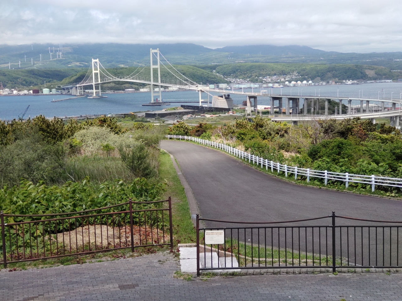 着工から竣工まで14年の歳月を要した白鳥大橋建設、その記念館が道の駅「みたら室蘭」として残っている。白鳥大橋は道の駅の東側から全景がよく見える。道の駅の北西側には海に面した遊歩道があり、穏やかな潮風を受けながら散歩するのが気持ち良い。ただ、時折強い風が吹いて帽子が飛ばされることがあるので注意!(前を歩いている人の帽子が風で飛ばされた)。道の駅のすぐ西には200年前に室蘭を訪問した英国軍艦プロビデンス号の記念碑もある。