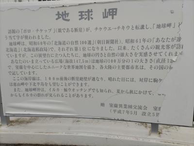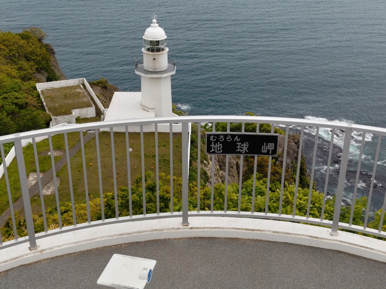 地球岬は、室蘭市の南に突き出した地にあり、断崖絶壁に囲まれ、よく晴れた日には遠く下北半島も見える風光明媚な景勝地である。灯台の後ろの上にある展望台からの眺望は抜群である。地球岬の名前はアイヌ語の「断崖」に由来しているらしい。岬の手前には、比較的広い駐車場やトイレ、売店などがある。JR室蘭駅と母恋駅付近から岬まで車道が整備されているが、室蘭駅付近からの道は狭いので、母恋駅付近からの道を登るのがお薦め。