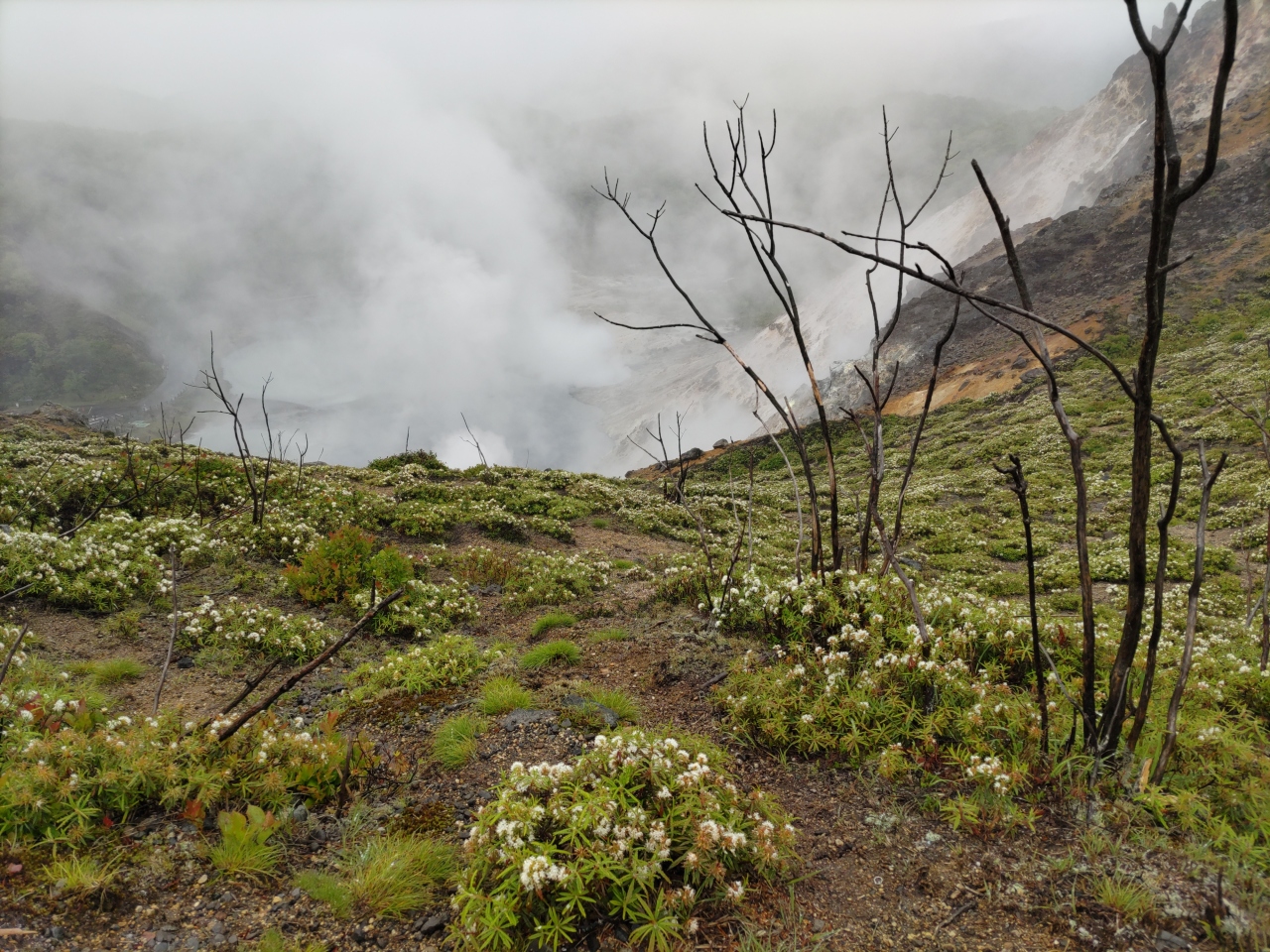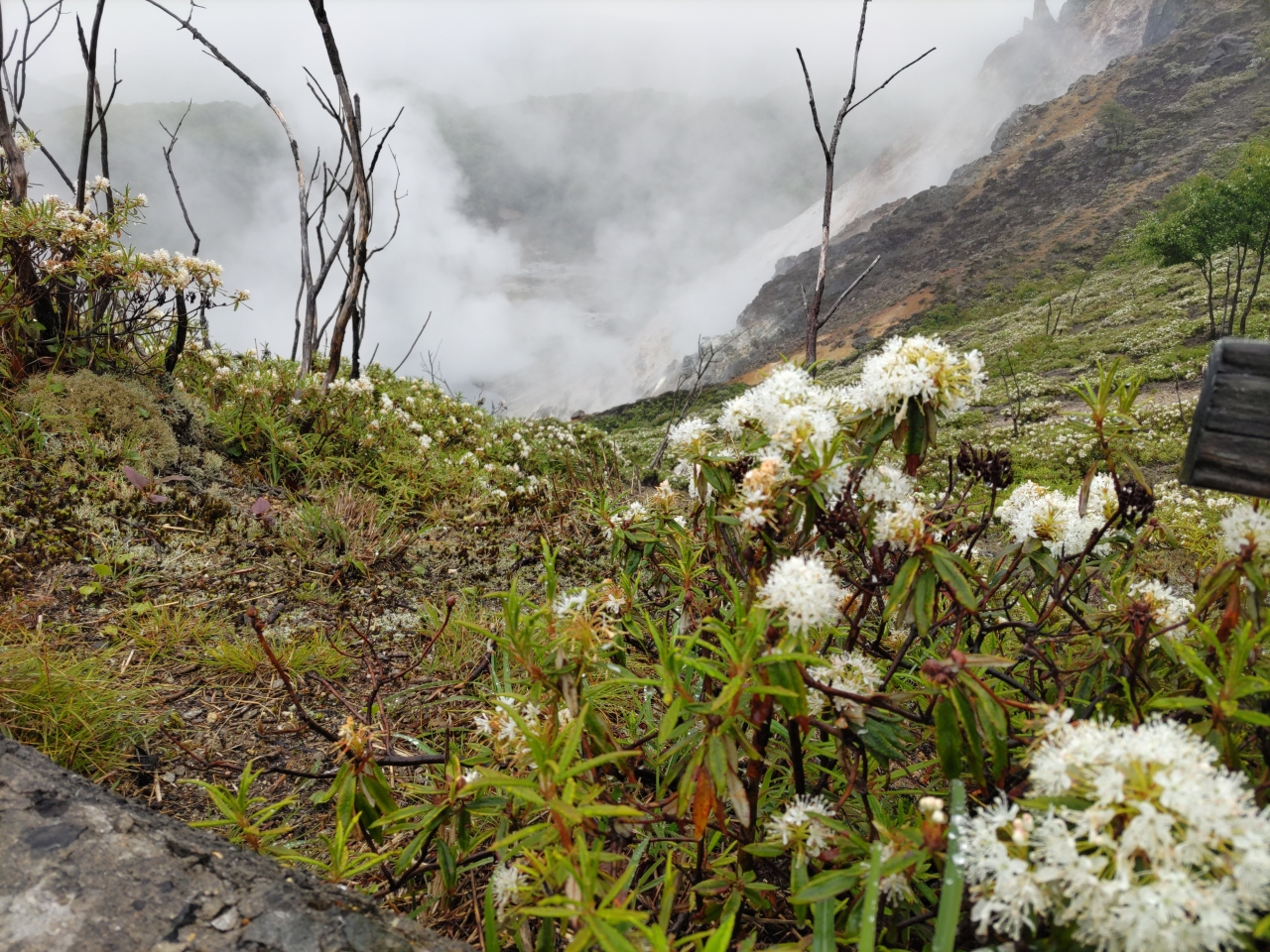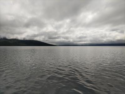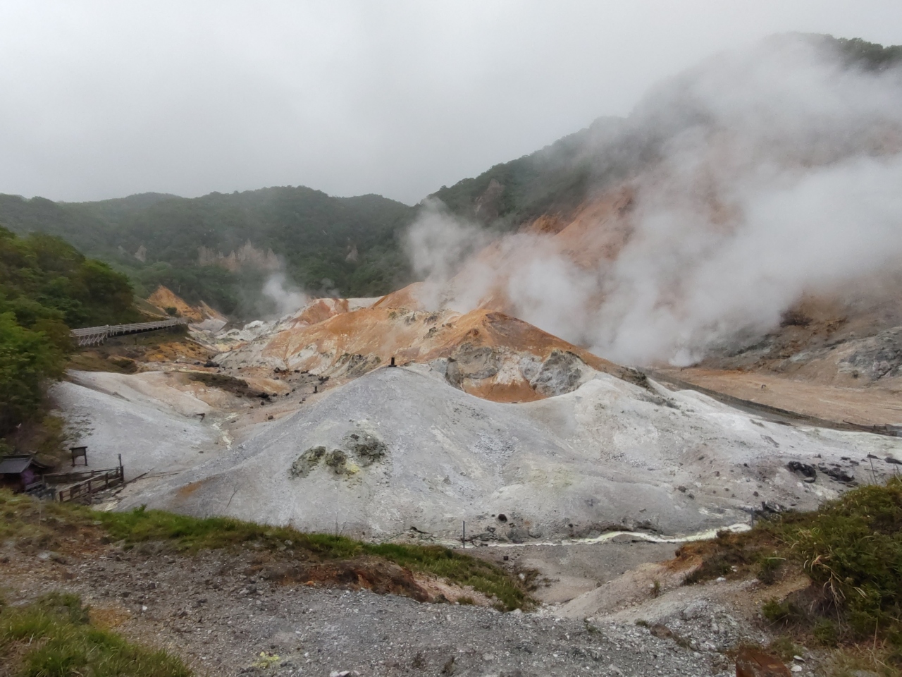 登別温泉から道道350号線を北に走り、右回りに車を走らせるとクッタラ湖畔に到着した。ここから30分ほどで、道央道登別東インターに戻ることができる。クッタラ湖は原生林に囲まれたまん丸い大きなカルデラ湖で、注ぎ込む川や流れだす川はなく、透明度は全国トップクラスらしい。残念ながら濃霧のため湖面を見ることができず、美しい景色を想像しながら案内板をカメラにおさめた。次のチャンスを着たいしたい。