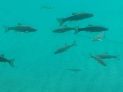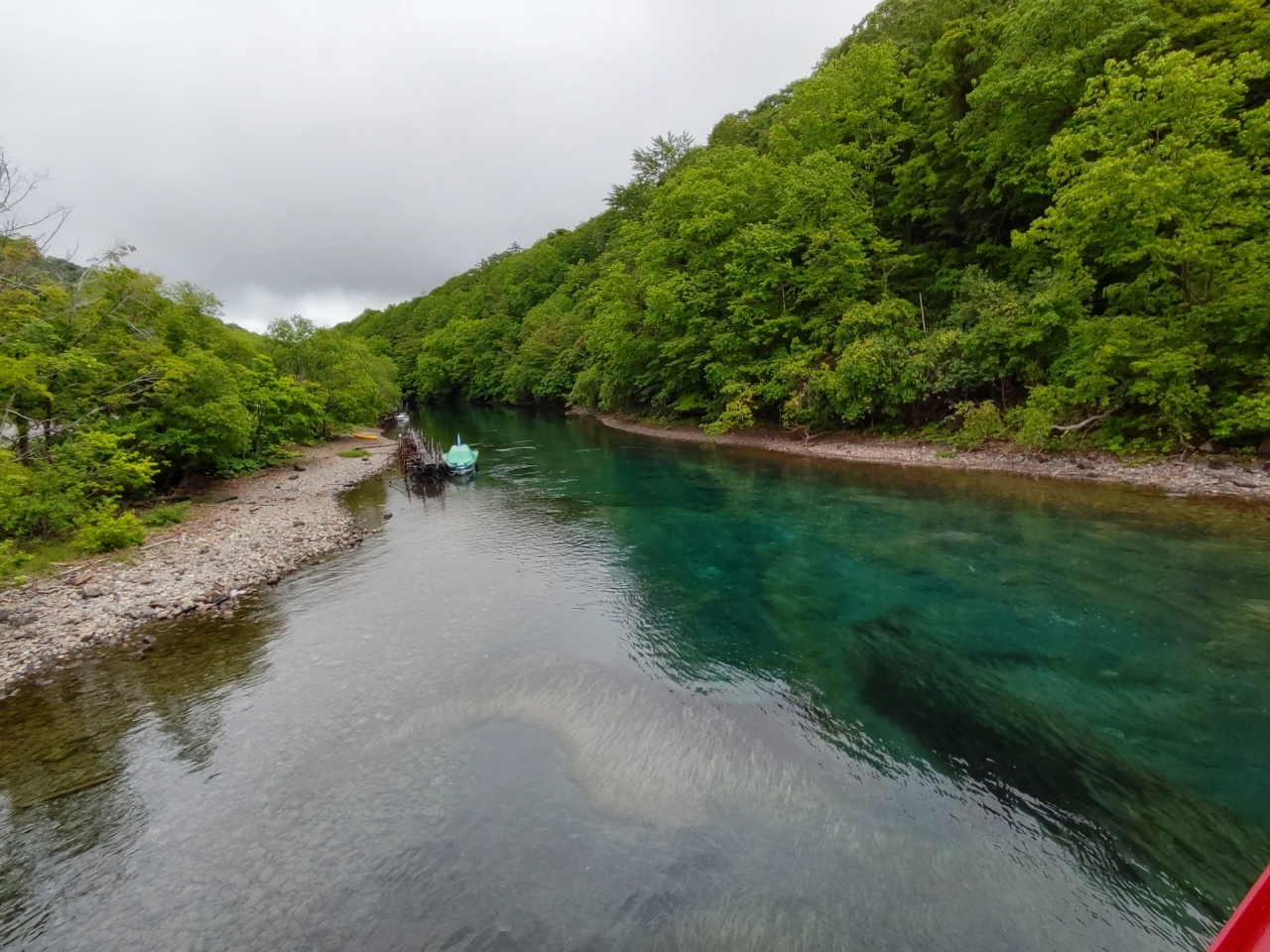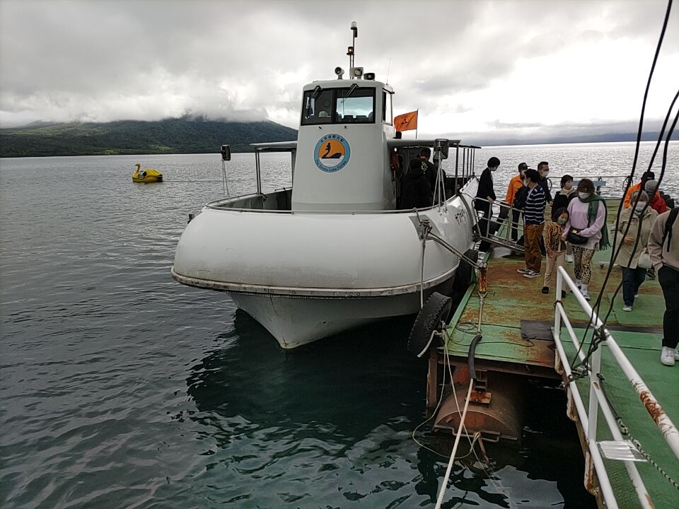支笏湖の東岸、支笏湖温泉の船着場から、支笏湖水中観光船が出ている。約30分の船旅で料金は1650円だ。船のデッキからは洞爺湖の景色を楽しみ、船内に入ると窓から湖水や湖底のようすが見える(船員がわかりやすく説明してくれる)。多くの淡水魚が泳ぎ、柱状節理の岩石片が横たわっているのがよくわかる。