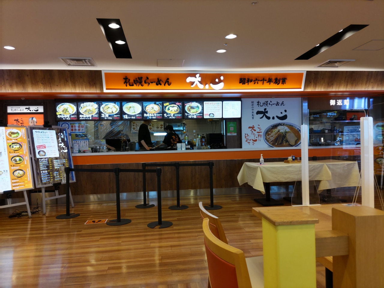 新千歳空港内には、メニューに札幌ラーメンがあるレストランはいくつかあるが、この度は、時間にあまりゆとりがなかったので、スーパーラウンジと同じターミナルビル3階のフードコートにある、「札幌ラーメン大心」で離陸前の夕食をとった。「味噌ラーメン」が税込み850円と比較的安価だったが、大変美味しかった。