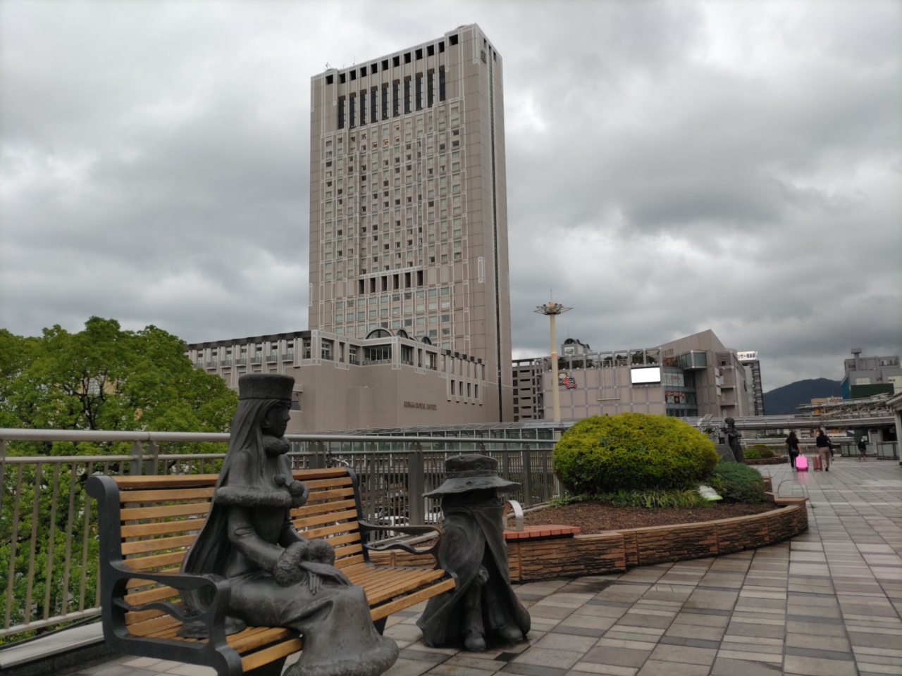 7月中旬、北九州市小倉を訪れてリーガロイヤルホテルの地下駐車場に車を停め、小倉駅の南口近くのレストランで夕食をとった。店を出ると猛烈な豪雨だったが(この日の夜は北九州市では緊急避難指示が発令)、全く濡れることなく、屋根のある通路を数分歩いて小倉駅からホテルまで帰ることができた。ホテルのロビーや部屋は広くて綺麗、スタッフの対応もよく快適に過ごすことができた。14階の部屋からは遠く関門海峡大橋をのぞむことができた。
