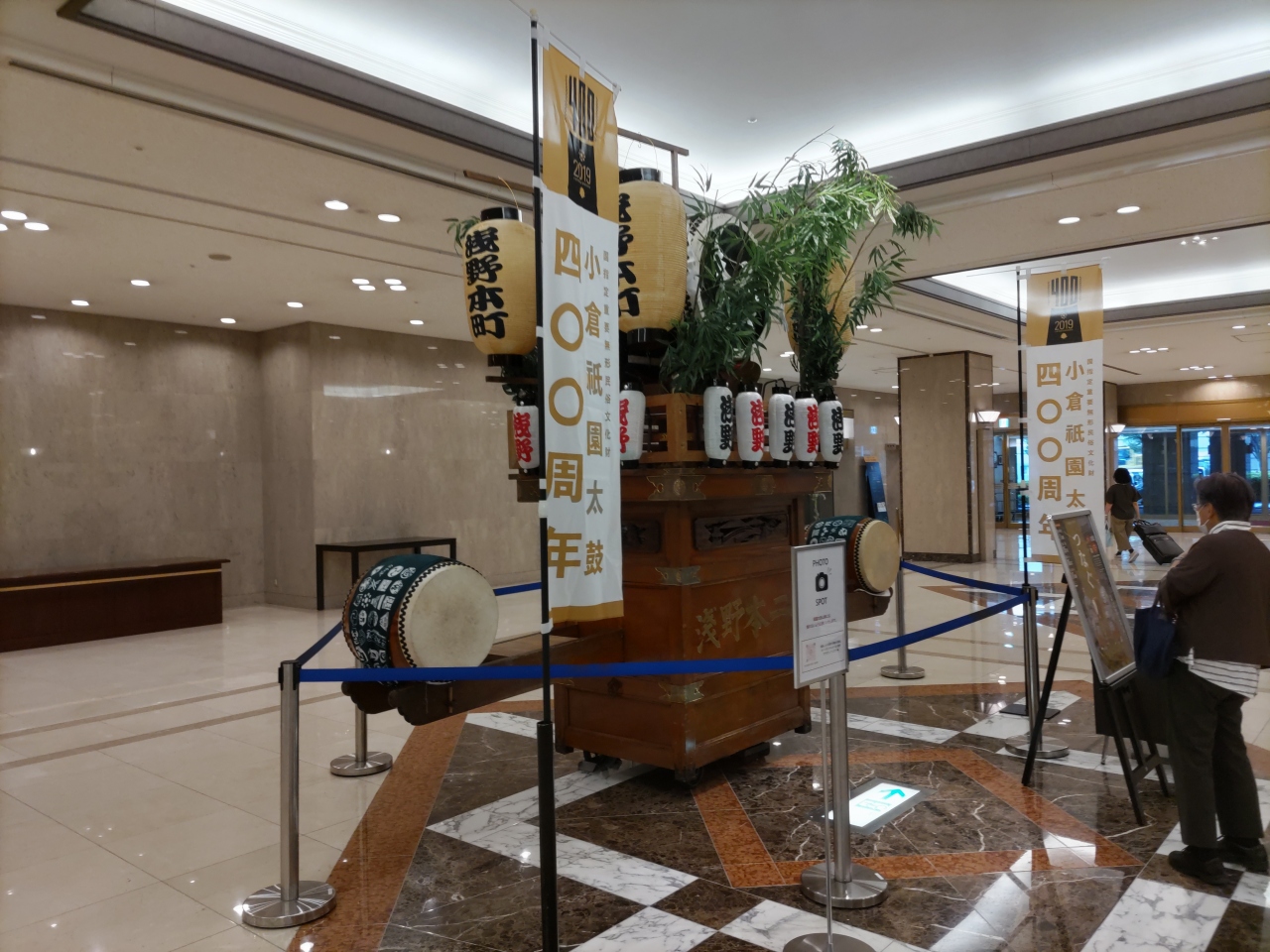 小倉城の北に社殿を構える神社で、古くから「こくらのぎおんさん」の愛称で親しまれている。この神社で行わる小倉祇園太鼓は、約400年の歴史を有する古い祭りであり、京都の祇園祭、博多祇園山笠と共に「全国三大祇園」に数えられている。7月18日の午後、偶然にも祭りの翌日にこの神社を参拝した。まだ祭りの余韻を何かしら感じた。