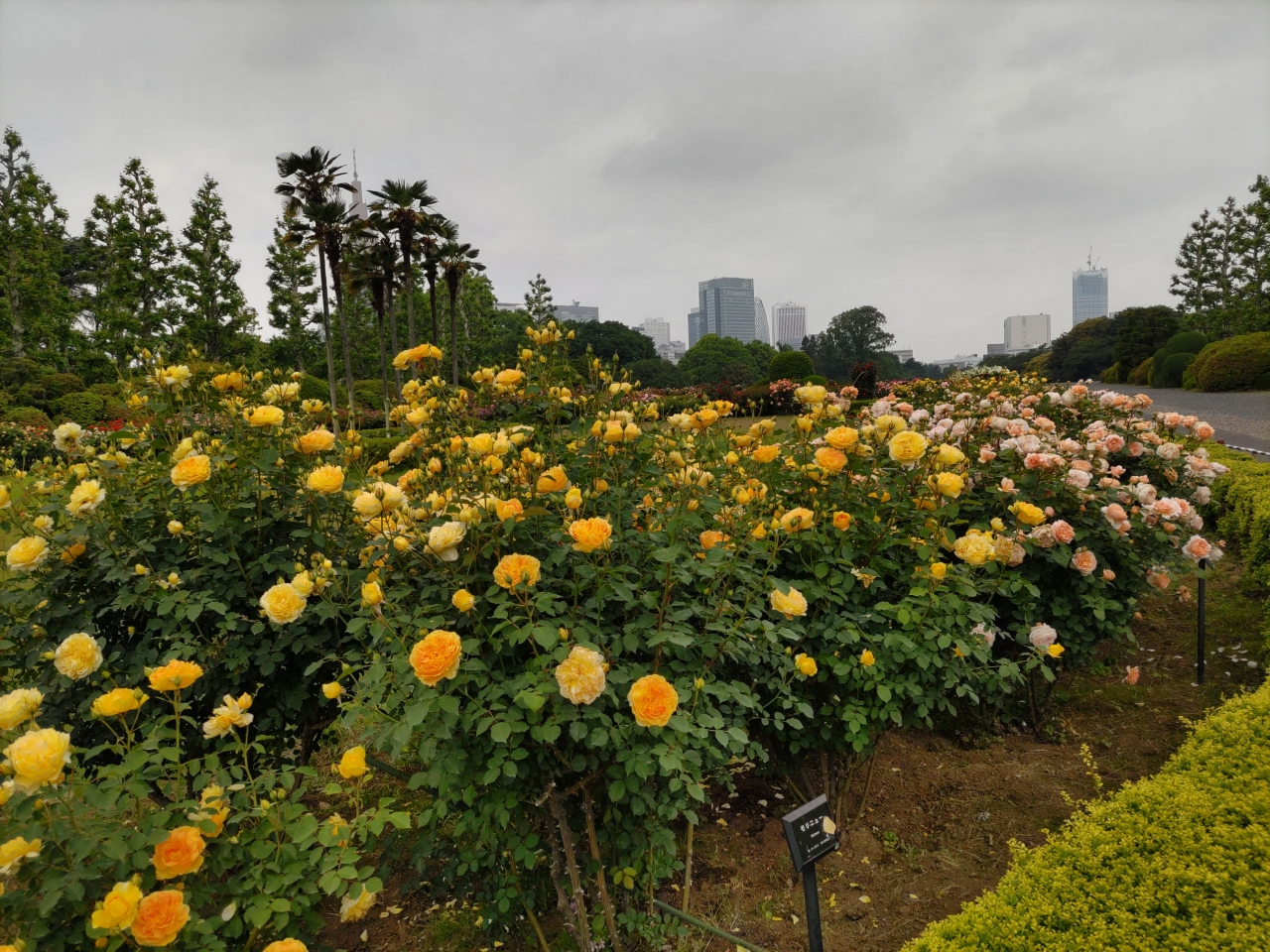 5月中旬の朝、数10年ぶりに新宿御苑にやってきました。午前9時の開園を待って大木戸門から入り、和風庭園や整形式庭園、中の池など新宿御苑の東半分を1時間あまり歩き、千駄ヶ谷門から出ました。バラ花壇には黄色や赤色の花が咲きとても綺麗でした。プラタナス並木の道は、ヨーロッパの公園を歩いているようでした。なお、入園料は一般500円ですが、65歳以上のシニア割引適用で250円でした。