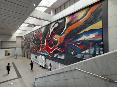 「明日の神話」は、JR渋谷駅から京王井之頭線渋谷駅への連絡通路にあります。大阪万博の「太陽の塔」と対をなす岡本太郎の代表作で、一時所在不明となっていたものが、発見・展示されています。悲惨な体験を乗り越え、再生する人々のたくましさを描いたとされています。横5.5m、縦3mの巨大壁画で、駅構内を往来する人々が多くなかなか全体像を写真に撮ることはできませんが、一見の価値は十分あると思います。
