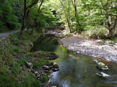 上帝釈峡の駐車場に車を停め、峡谷内を南に10数分歩くと雄橋に着きます。川底からの高さが約40mの石灰岩の天然橋です。岩盤の下部が渓水の浸食作用によって貫通してできた珍しい橋です。なお、渓谷の入口にある案内板を見て、雄橋から車でそのまま渓谷を下って、神龍湖のある下帝釈に行けるのではないかと迷っている人を時折見かけますが(直接聞かれたこともあり)、雄橋を過ぎると、細い道になって車での移動は不可能です。峡谷の西の県道23号線・452号線をまわって行くしかありまあせん。
