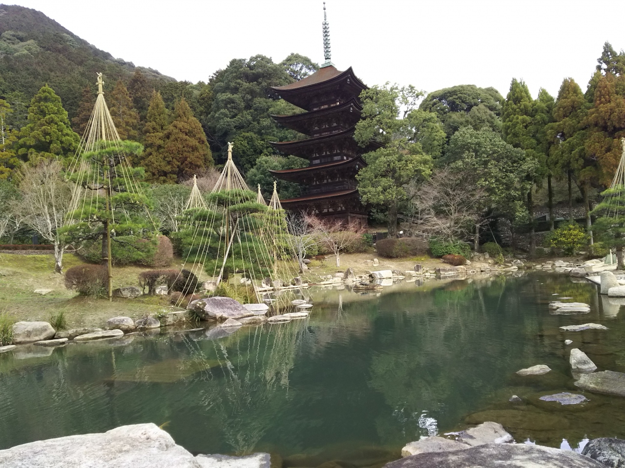 瑠璃光寺は曹洞宗の寺院で、大内氏全盛期の大内文化を伝える。国宝の五重塔は、現存する五重塔のうち10番目に古く、檜皮葺屋根造りで、美しさは日本三大名塔に数えられているらしい。特に池面にうつる姿が美しい。毎年春に湯田温泉に一泊し、翌朝瑠璃光寺を訪れ、清新な雰囲気の中で境内を歩き、本堂に入らせていただき、本尊を始め仏像を参拝している。寺院の前にはトイレや大きな無料駐車場が整備されている。