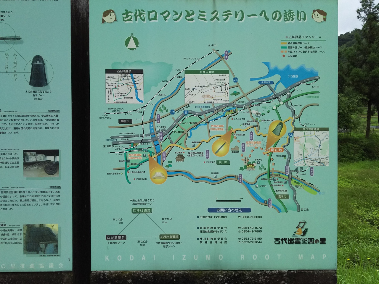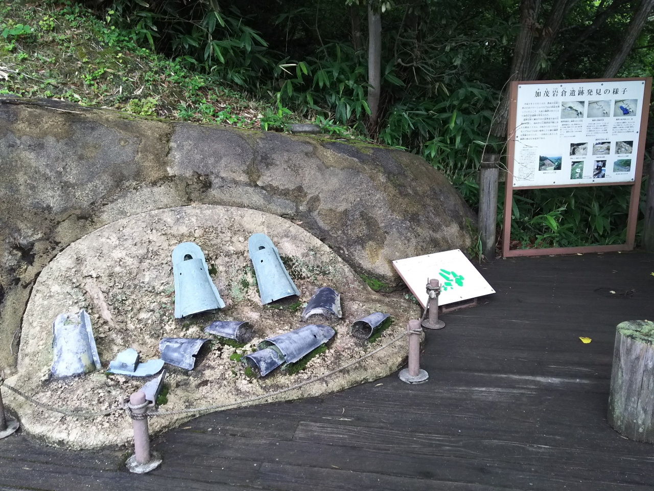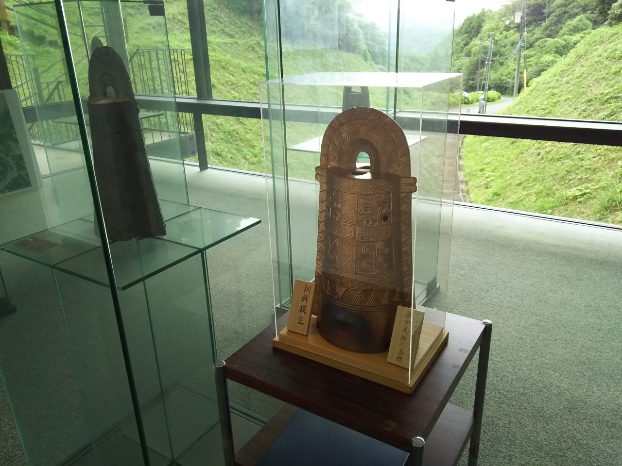 国道54号線を宍道から広島方面に走っているとき、偶然に加茂岩倉遺跡の案内があったので行って見ました。国道から西に数分走ったところの駐車場に車を停め、10数分緩やかな坂道を歩くと遺跡と資料館がありました。平成8年の農道建設工事中に、土中に埋まったままの銅鐸が多数発見され、話題になりました。39の銅鐸は国の重要文化財にしてされ、現在は出雲大社の横の島根県立古代歴史博物館に保管されています(後日見学に行きました)。資料館にはレプリカや資料が展示され、スタッフの方から親切な説明を聞きました。木道の散策コースが続き、発掘現場が再現などもあり、古代のロマンにひたることができました。