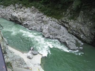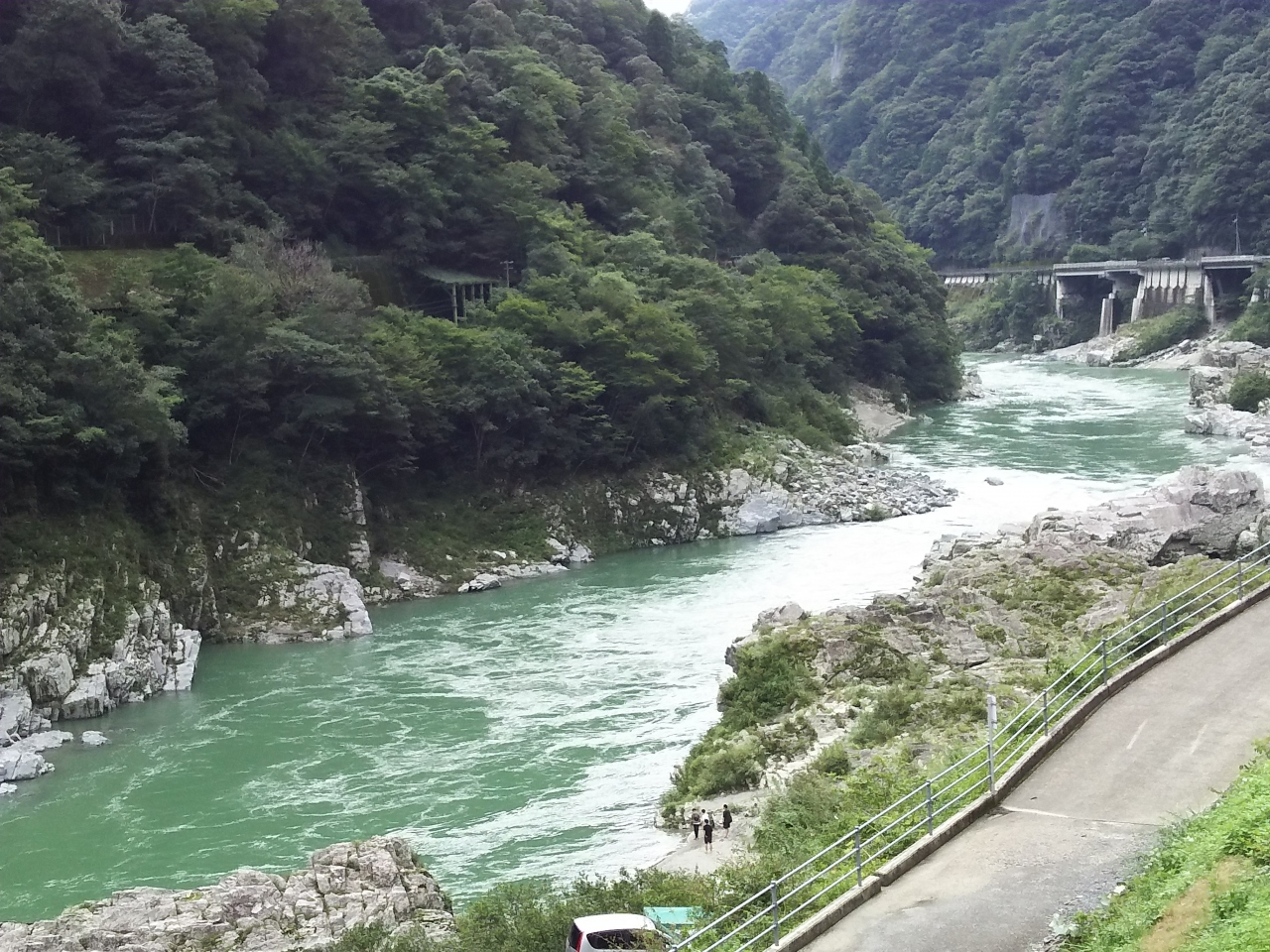 9月中旬。国道32号線を自家用車で南下。「道の駅 大歩危」の駐車場に車を停めて、大歩危の石灰岩の絶壁と渓流を見た。2億年前の石灰岩が吉野川の激流によって削られたという景観は素晴らしい。ちょうど、JRの観光列車が景観をみるためか、流れの向こうに停車した。そういえば、50年ほど前に列車でここを通過した。どちらから見ても素晴らしい!駐車スポットは道の駅をはじめ何箇所かあるので、そこに停めて見よう。走りながら景観を見るのは危険だ。