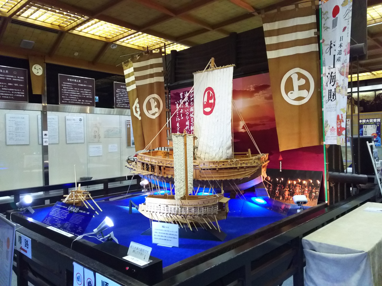尾道市因島にある村上水軍の資料館です。今治から尾道に向かうしまなみ海道を走る途中、因島南インターチェンジで高速をおり、10分ほど走って資料館の駐車場に車を停めました。最初に因島村上氏の菩提寺である金漣禅寺を参拝して、約数分間坂を登って水軍城に到着しました。もともとこの場所に村上水軍の城があった訳ではなく、後から建築された資料館ですが、村上水軍にかかわる多くの資料が展示されていました。