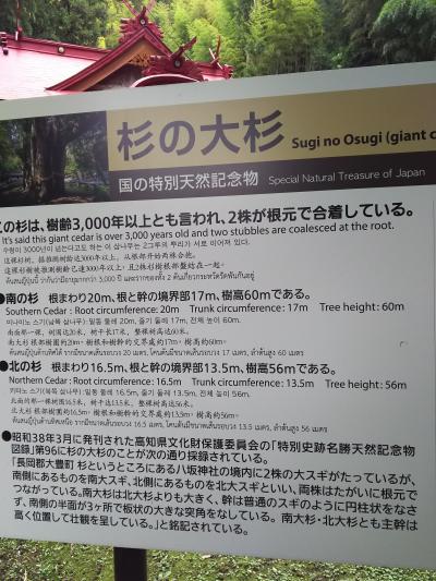 国道32号線を高知に向かって南下しているとき、偶然に「杉の大杉」の案内板が目にとまり、初めてなので見学してみることにした。国道から少し西に入ったところに駐車場があり、その直ぐ近くの八坂神社の境内に大杉があった。予想以上に大きく、縄文杉も見に行ったことがあるが、それに負けない大きさだった。推定年齢3000年で特別天然記念物だ。かつて美空ひばりがこの大杉に「日本一の歌手になれますように」と願をかけたそうだ。近くに記念碑があり、美空ひばりの曲が流れていた。