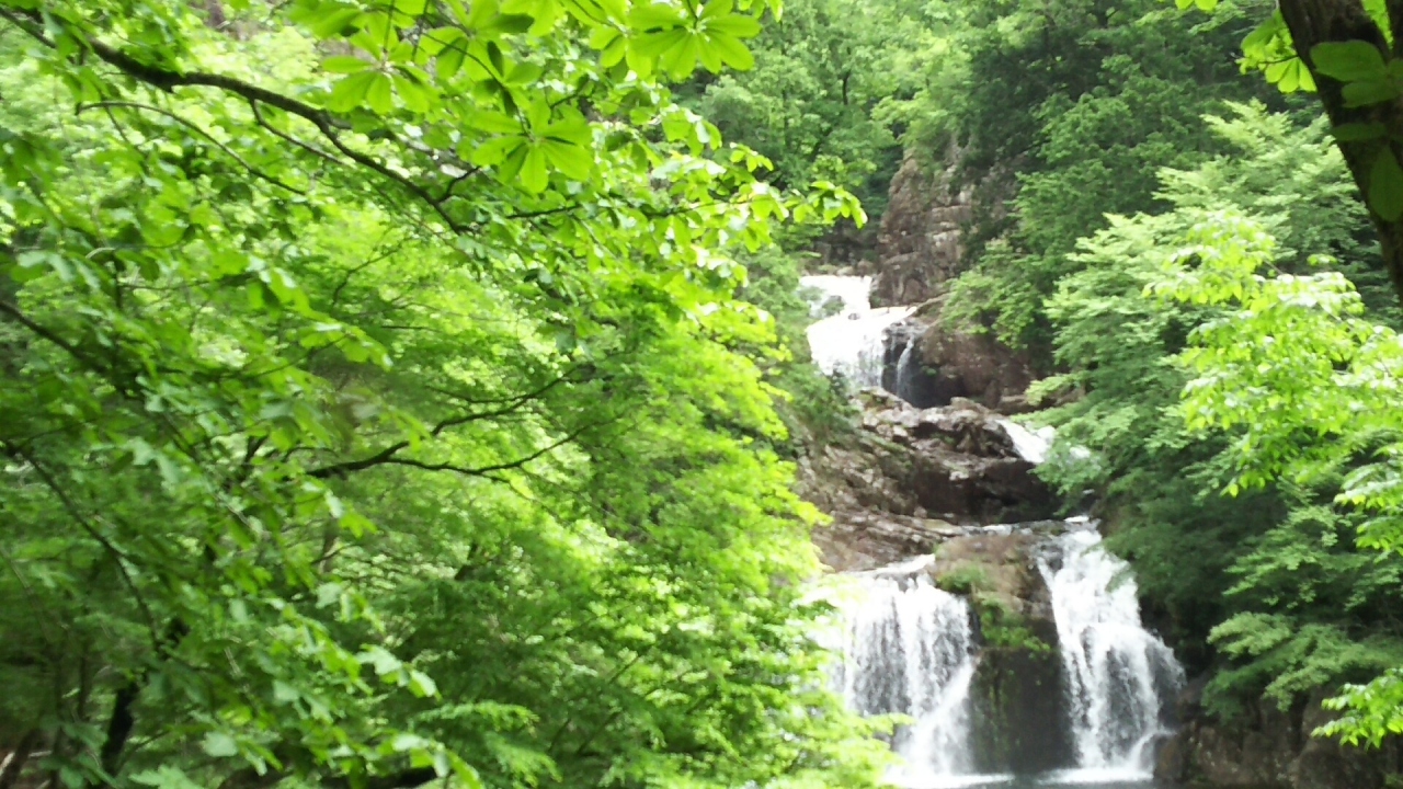 樽床ダム(聖湖)の堰堤の西側の駐車場に車をおいて、小道を下ること約10分で轟音がすざましい三ツ滝に到着する。木々と巨岩に挟まれた三曲五段の滝で見ごたえ十分!帰りはもとの道を急登することになる。時間に余裕があれば、国道191号線の小板から大規模林道を走って餅ノ木に駐車し、遊歩道を三ツ滝まで約80分で往復するのがお薦めだ。急登もほとんどないし、途中に竜門や出合滝などの見所もある。川床の見える吊橋もある。