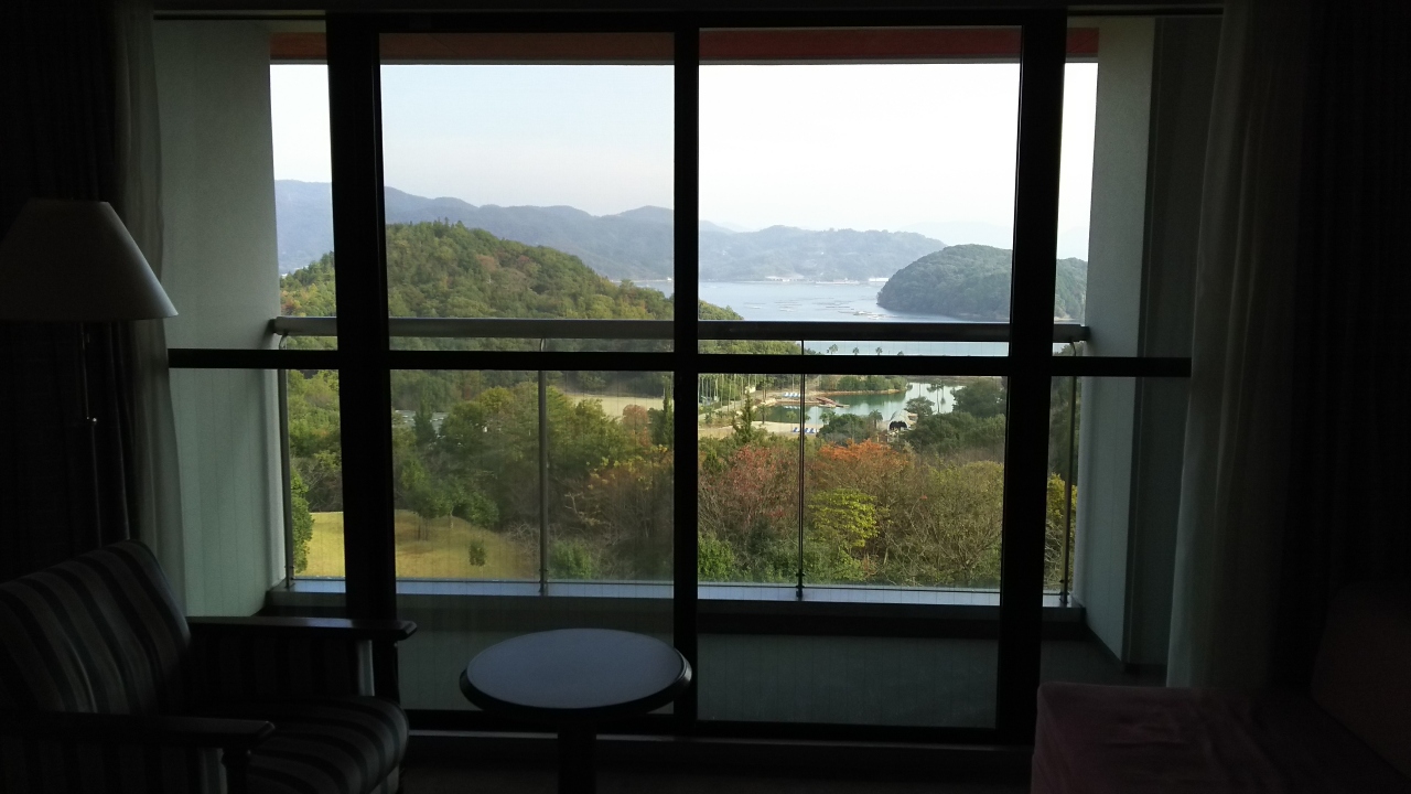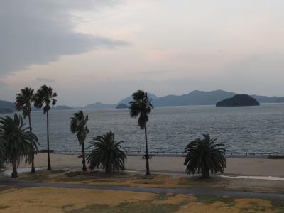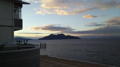 国道487号の江田島市永田川橋東詰交差点から、西に向かって県道36号を車で10数分走ったところにある綺麗なビーチに面した小さなホテルです。「広島じゃ割」を利用して割安で宿泊しました。客室は10数室ですがいずれもオーシャンビューで、瀬戸内海に浮かぶ島々、宮島や大黒神島、周防大島が見え、遠くには大竹市や岩国市の家々も見えます。眺望抜群です。展望浴場は地元の日帰り入浴の方も多く利用していました。