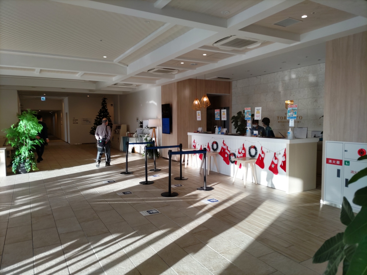 宮古空港からホテルまで、航空機の到着にあわせてシャトルバスのサービスがある。新しい綺麗なビジネスホテルでスタッフの対応も良い。朝食はメニューが豊富で大変美味しかったが、夕食はレストランがクローズしており(2日目は団体客対応のためオープン)、食料をどこかで調達して自室で食べるか、空港のレストランで食べるしかなかった。空港までは徒歩約10分で、夕食は空港ビルのレストランでとった(閉店時間に注意)。ホテルの1階にはスカイレンタカーの営業所もあり、観光にはとても便利だった。