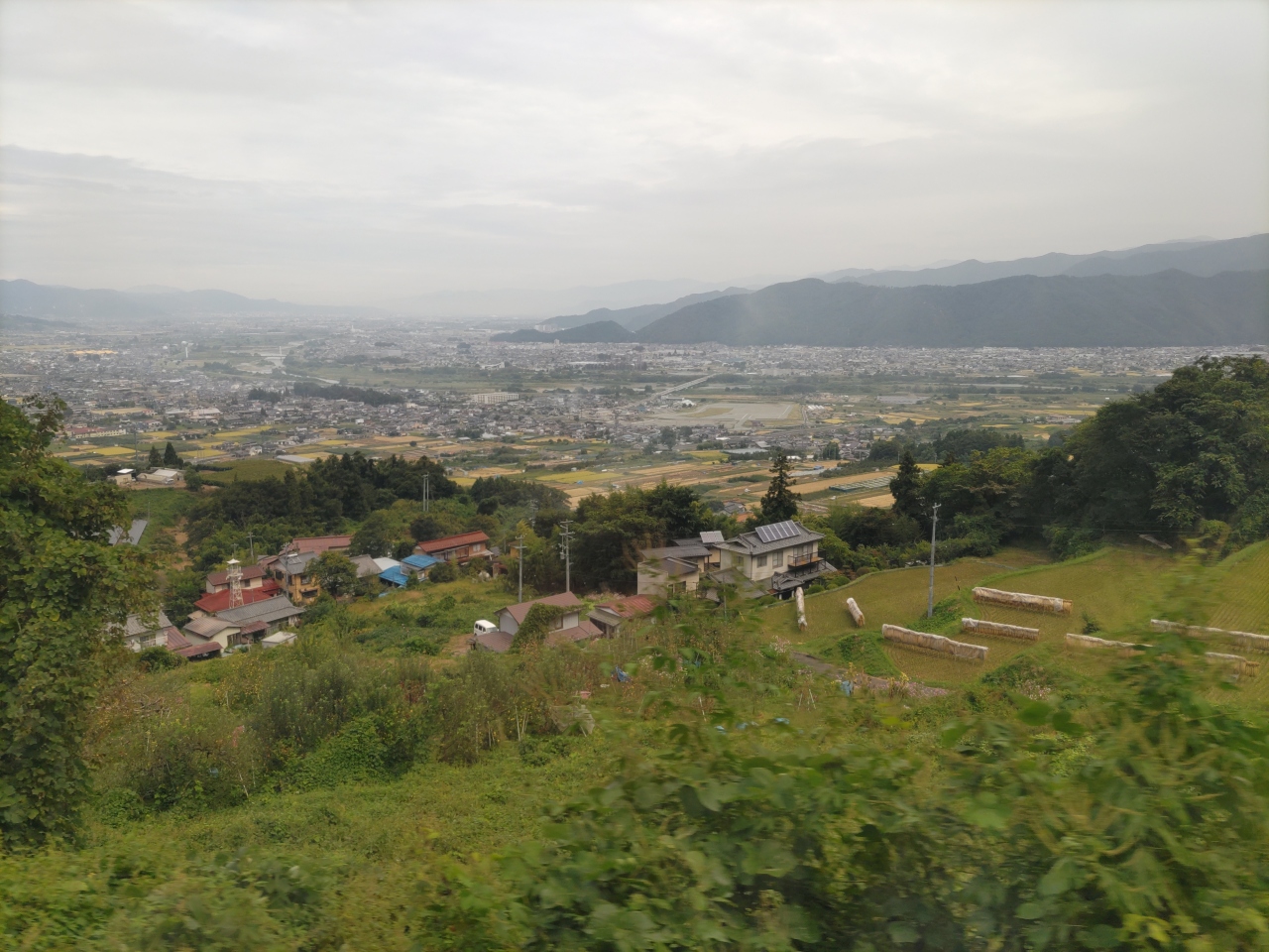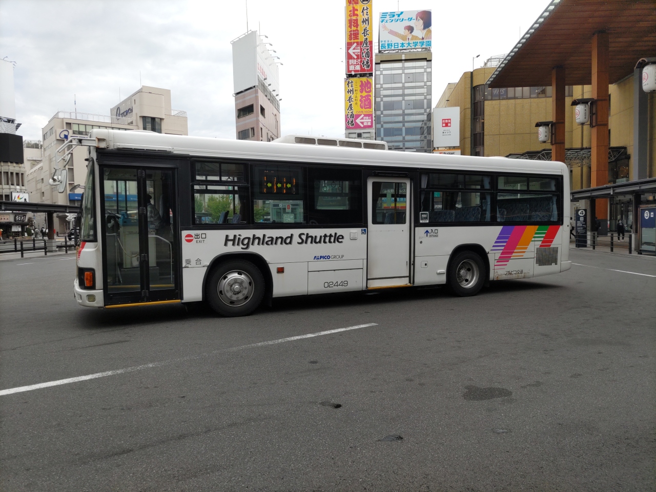 JR長野駅善光寺口①番バス停から、善光寺大門前までアルピコ交通の路線バスを、翌日は③番バス停から川中島古戦場経由松代駅まで路線バス利用した。松代駅までの所要時間は予定では約30分だったが、朝の通勤ラッシュの時間帯だったため45分を要した。交通網が充実して便利なバスだが、いずれの路線もイコカ(JR西日本の交通系電子マネー)は使用することができず運賃は現金で支払った。なお、両路線ともバスは中乗り、前降りだった。