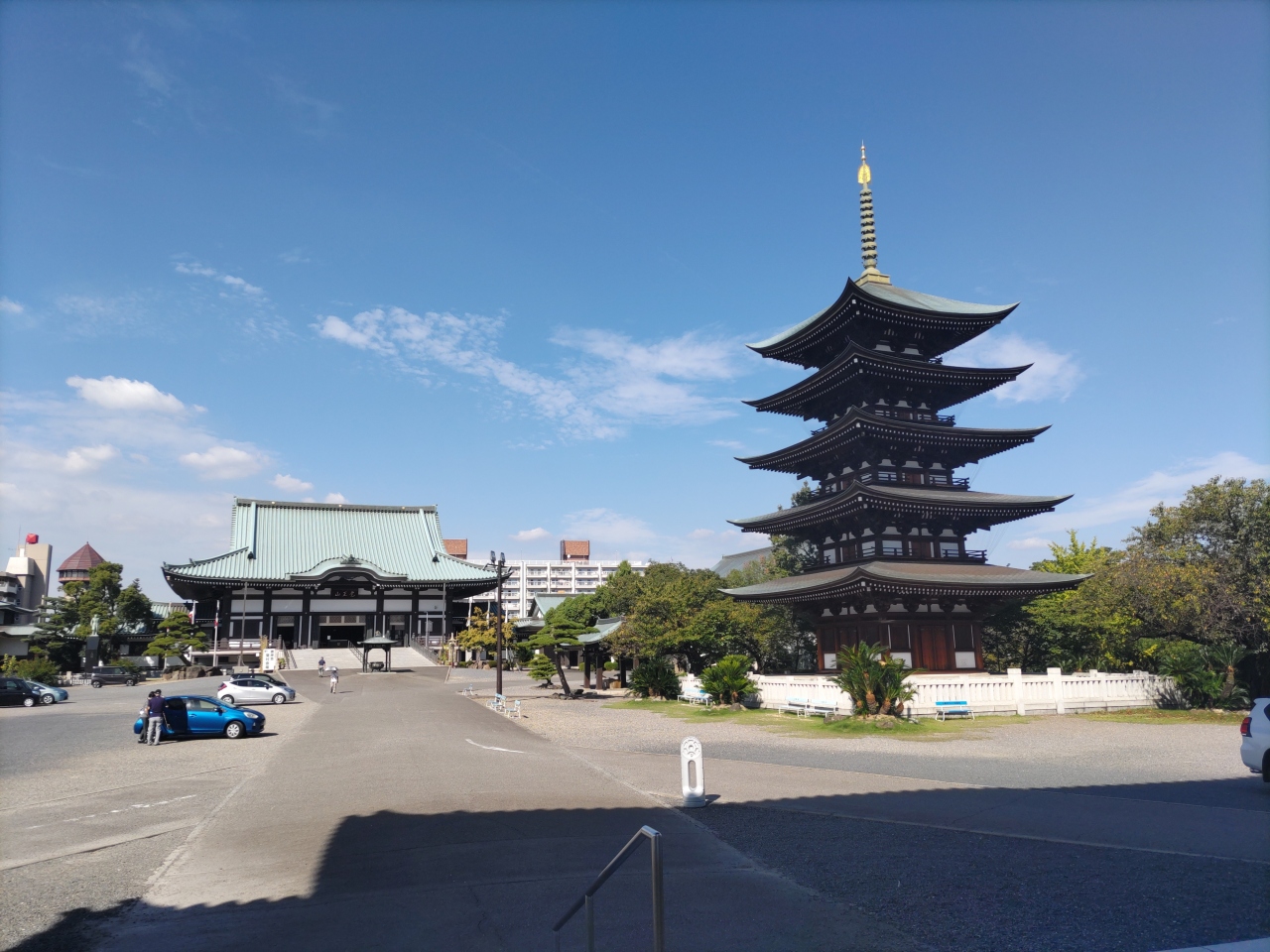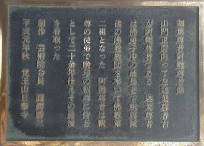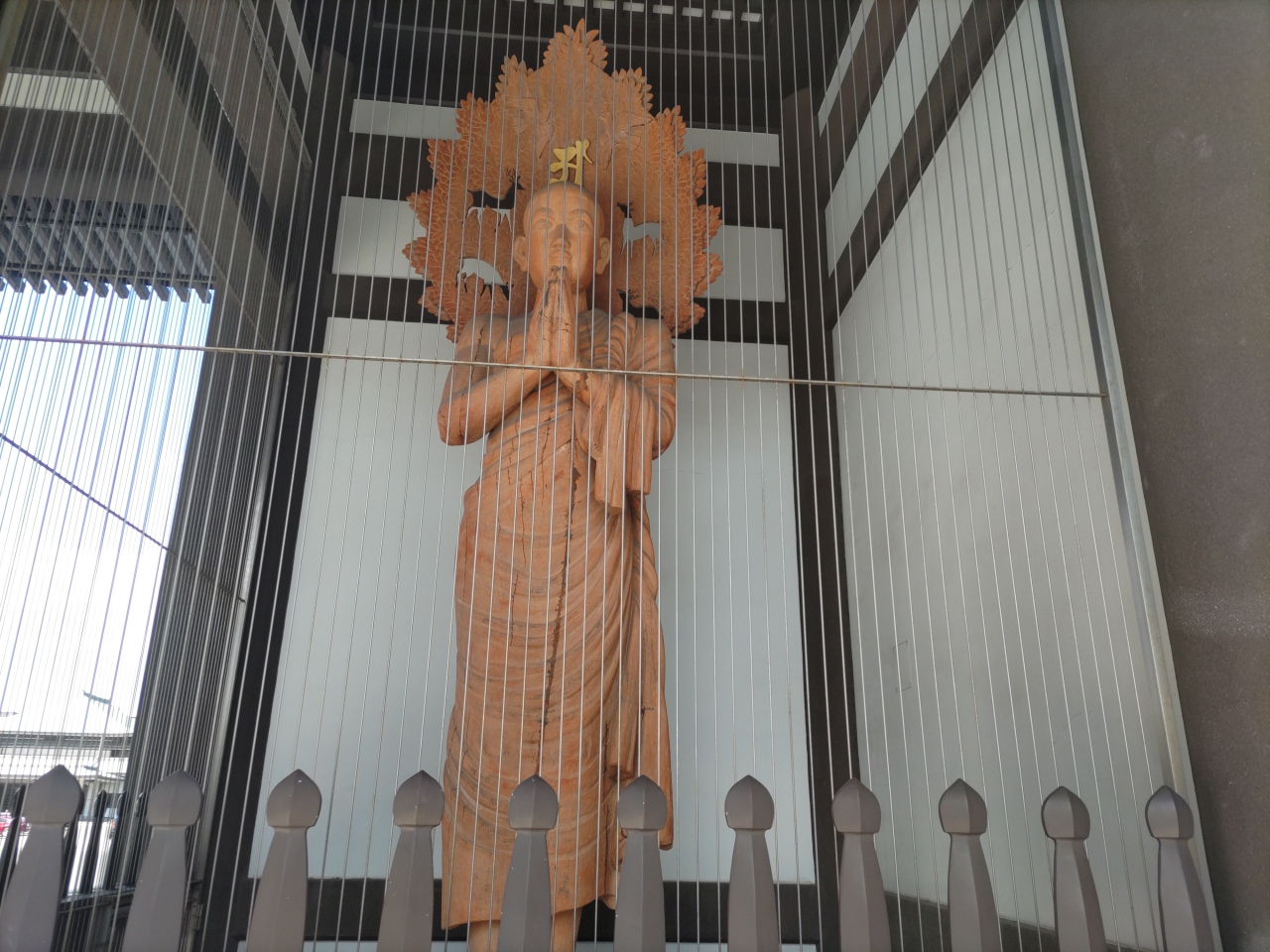 覚王山日泰寺は、1900年にタイ国王から友好記念に寄贈された釈迦の遺骨とタイの国宝・金剛釈迦如来像を安置する、全仏教徒のために建立された寺院で、19宗派の官長が3年交替で住職を務めている。地下鉄東山線覚王寺駅を降りて、参道を10分あまり歩いて山門に着いた。山門の仏像は故郷(広島)の彫刻家 圓鍔勝三作との説明があり、なぜか親しみも感じた。山門に入ると広い境内の正面に本堂、右に高さ30mの五重塔見えた。本堂参拝の後、境内を出て釈迦の真骨が安置される奉安塔に向かったが、途中の森の中には古い石仏など沢山あり、本来はかなり古い寺院だったことが伺えた。