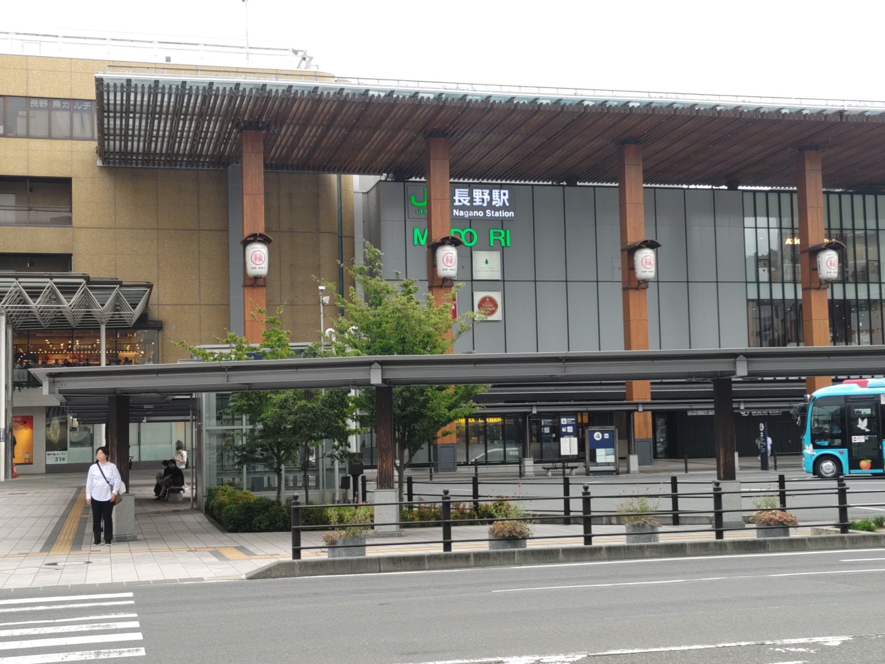 長野駅は、JR北陸新幹線や信越線(篠ノ井線)、飯山線、長野電鉄線、しなの鉄道北しなの線が乗り入れる拠点駅である。善光寺口のバス停からは善光寺や松代などに向かうアルピコバスや長電バスのほか、池袋や京都などに向かう高速バスが発着している。東口からは志賀高原や白馬などに向かう急行バスが発着している。なお、駅に降りたとき、構内にある長野市観光情報センターのスタッフが、長野観光などについて親切・丁寧にアドバイスしてくれた。