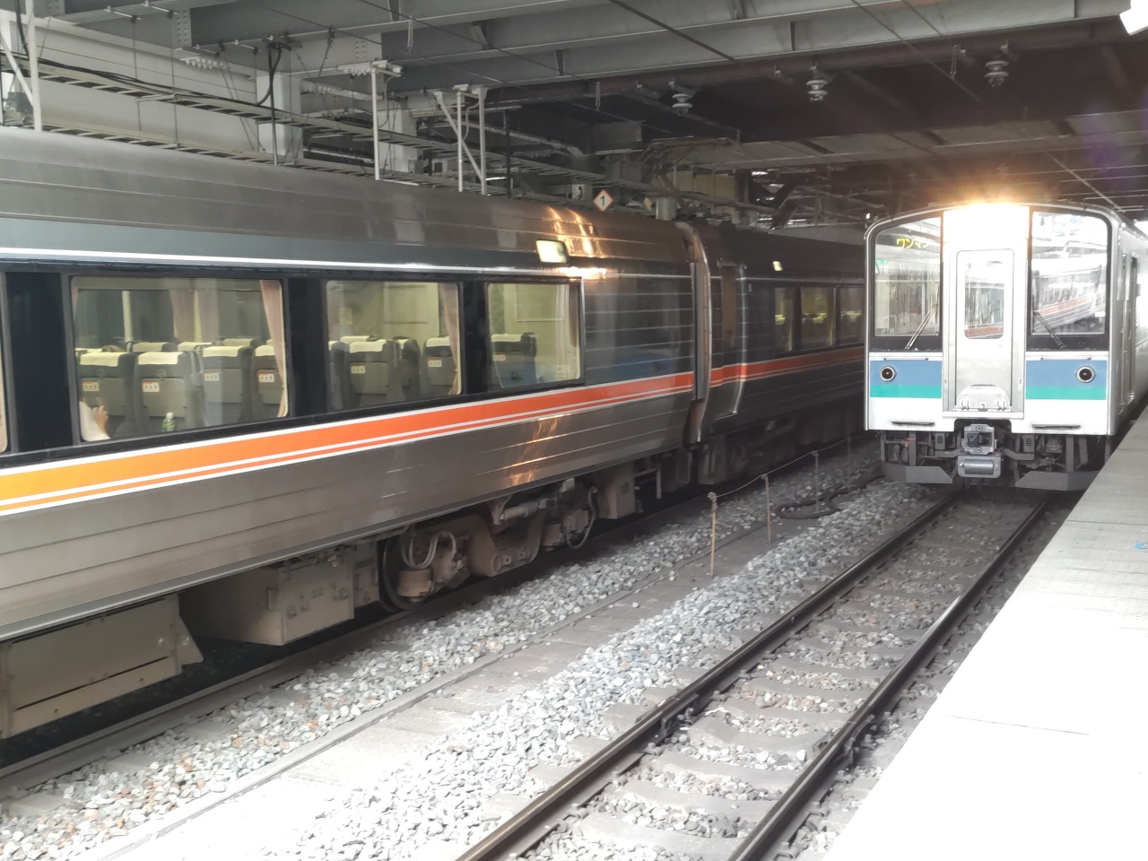 名古屋から長野まで「特急しなの5号」に乗車した。特急しなのは、横がA~Dの4席で前(長野側)から1・2・3…列と席が並んでいる。車窓を楽しむには、塩尻までは、左のA・B席がお薦めだ。木曽川、中山道の宿場町が見え、上松付近では、浦島伝説の「寝覚の床」が見える。塩尻を過ぎると右のC・Dがお薦めだ。篠ノ井線に入り姥捨付近では右下に日本三大車窓「善光寺平」の景色が楽しめる。なお、列車は、二列で一つの窓なので、後側の席が景色がよく見えるが、名古屋駅で指定席を購入するとき、売場でA席で後側の席をリクエストしたが、客車によって位置が違うので思うようにならなかった(親切な対応だったが)。