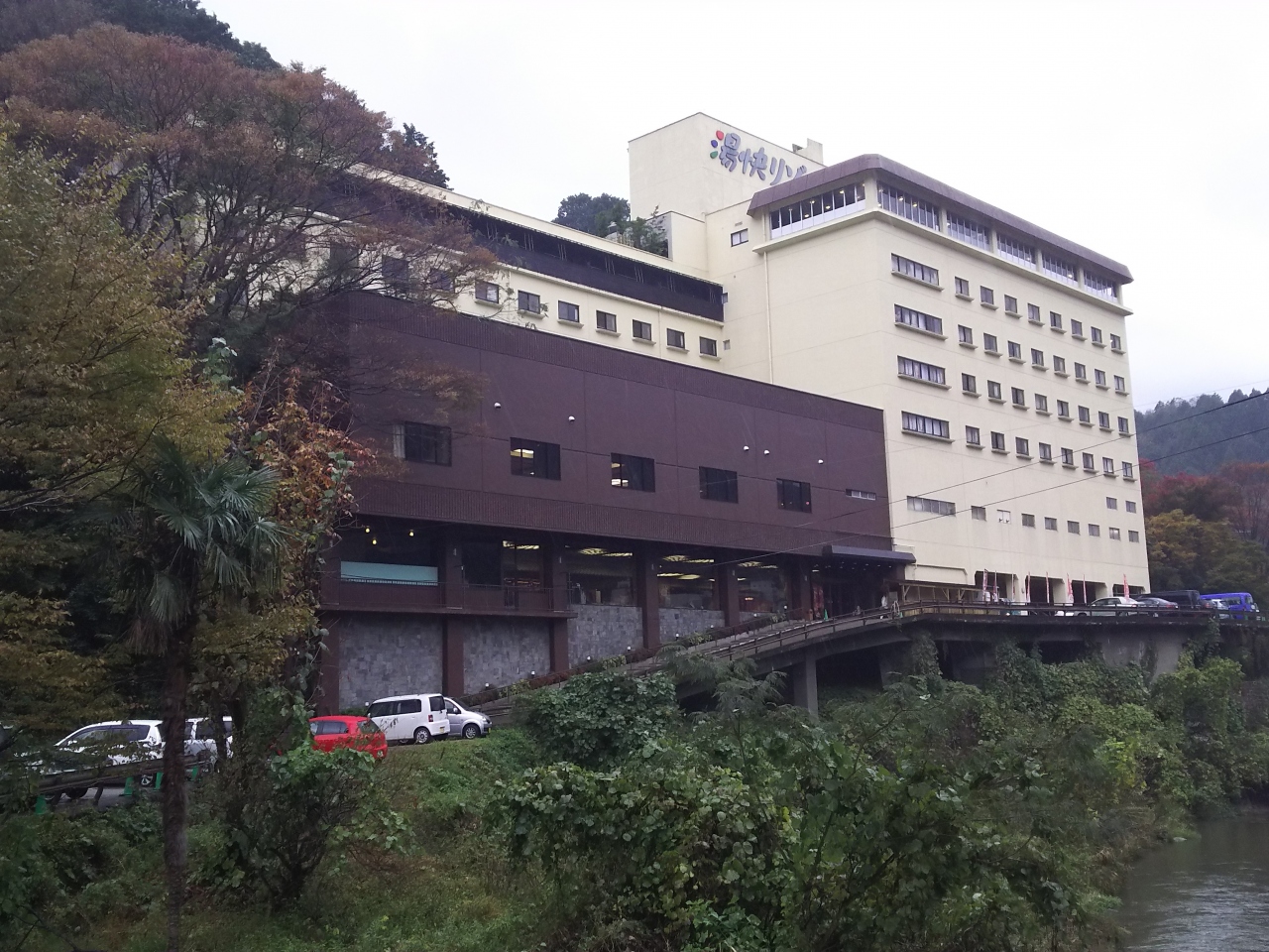 温泉街の中心からやや離れた丘の上にありますが、温泉街の中心にも旅館形式の三好屋あります。バイキング形式の夕・朝食を摂りましたが、料理の味付けは普通です。クロワッサンはいずれの湯快リゾートも焼きたてで大変美味しいと思います。浴場はビルの最上階に2つあり、夜と朝とで男女入れ替えになっています。一方の浴場は展望は良いのですが、やや狭いです。最上階でサンダルに履き替えて、ビル外の森に続く廊下を歩き、階段を90段ほど登ると、森の木々に囲まれた露天風呂に着きます。ムード満点でゆっくりと温泉を楽しむことができます。途中の廊下は屋根はありますが、風が吹き抜ける部分あり、冬季は途中が寒いかもしれません。また、酔っぱらっての露天風呂往復はお薦めできません。