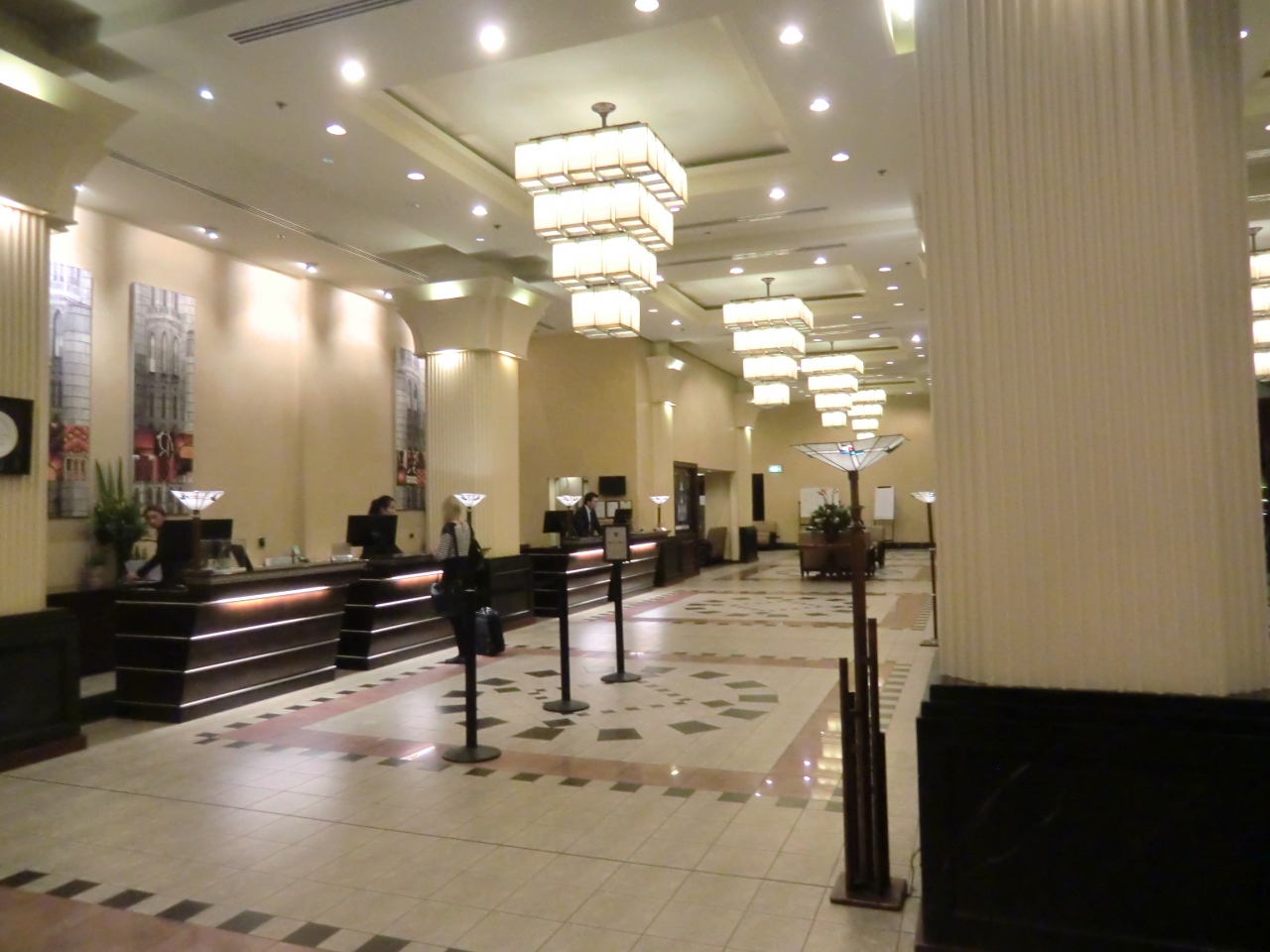 日本語は通じませんが、スタッフの対応は大変良く、ウエルカムドリンクなどのサービスもあります。部屋は広くなく、シャワースペースとトイレとの間に仕切りはありません。レストランは9階で、朝食は、簡単なビュッフェスタイルですが、加えてサンドイッチやオムレツなど数品から1品オーダーできます。