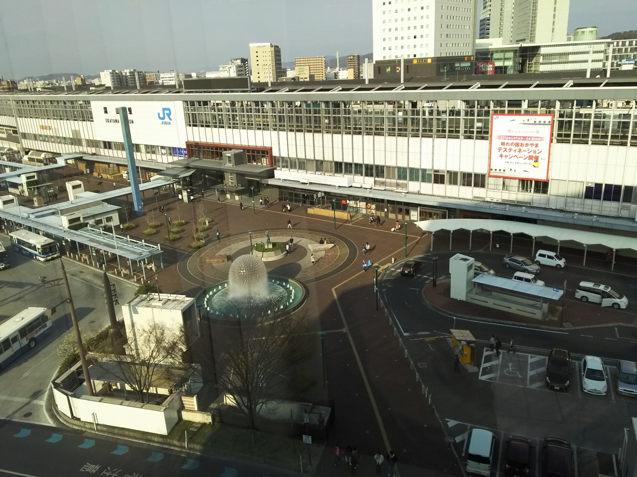 JR岡山駅の直ぐ前にあるビルの5~8階がホテルになっており、5階にフロントがあります。朝食をとるレストランも5階ですが、やや小さいので時間帯によっては混むこともあります。エレベータで地階まで降りると、地下街を通って岡山駅に直結しており、大型ショッピングセンターのイオンモール(中四国で1・2の規模?)にも傘なしで行けて、とても便利なロケーションです。フロントの対応も大変良く、客室も綺麗です。