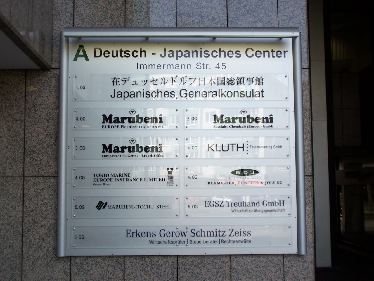 <写真は、デュセルドルフ日本国総領事館前の案内板>