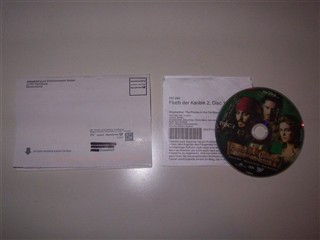 (※画像は実際に送られてきたDVD。今回は、魚介類が大量に登場する、かの有名なタイトルの2です。ドイツ題”Fluch der Karibik 2”)