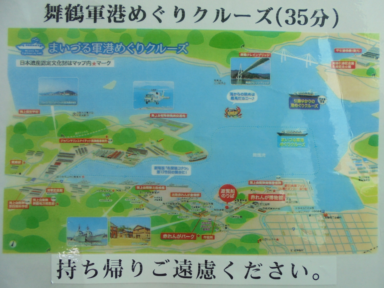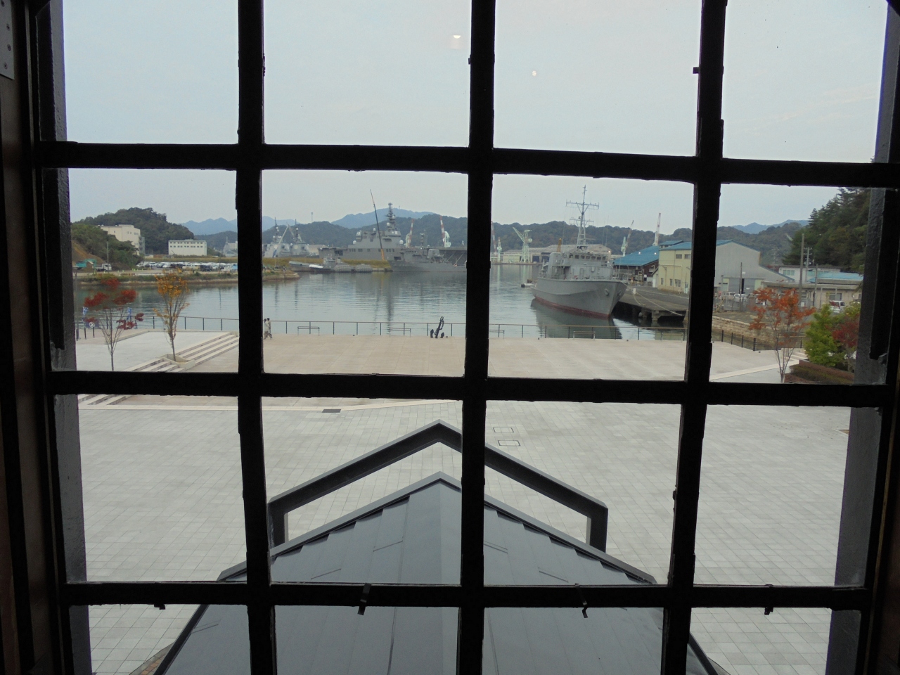 運がよければ、入り口近くの5台分ほどのスペースがある無料専用駐車場に停めることができます。少し離れたところにも無料の駐車場もあります。モダンな門をくぐると、左側に赤れんがの建物、右側には海上自衛艦が停泊する舞鶴港が見えます。赤れんがの建物は、戦争当時は魚雷の倉庫として活用されていました。今では、日本だけでなく世界中のれんがの歴史や、それにまつわるもろもろの展示が所狭しと展示されています。一階の受付で舞鶴軍港クルーズの乗船券が発売されています。クルーズもおススメです。