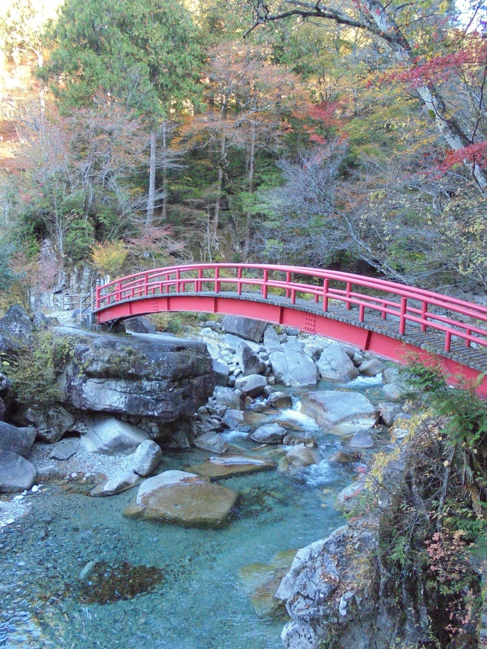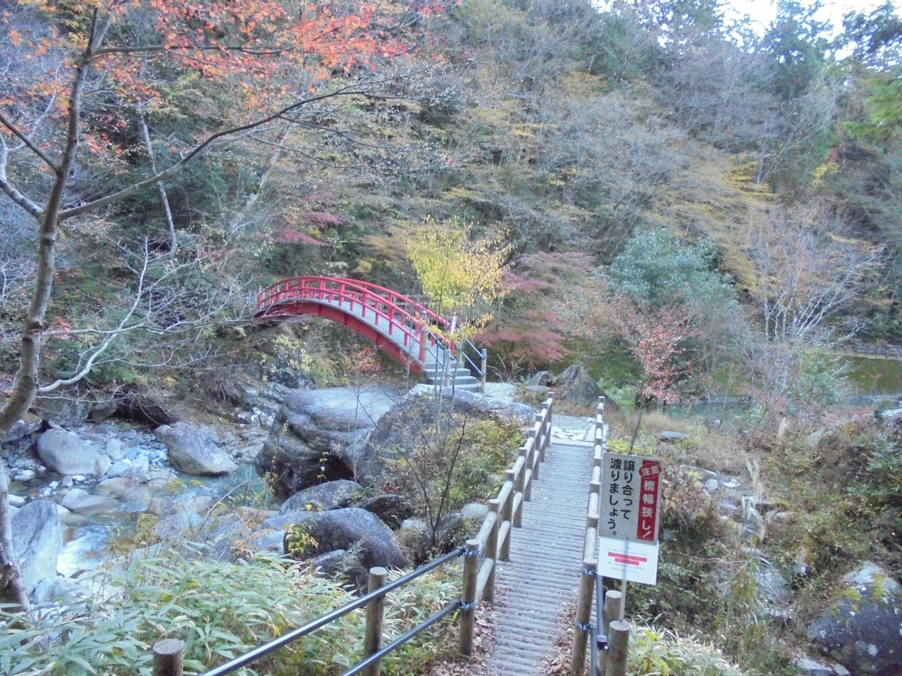 一番奥にある竜神駐車場を利用しましたが、千円の駐車料金は高い、半額くらいが適当かと。渓谷には遊歩道が整備されていて、赤い橋が見えるスポットが紅葉との景色によく合います。川に沿って下って歩くとバンガローやBQができる場所もあります。上流にある竜神の滝は紅葉の景色と相まって素晴らしい。木道に沿って下って歩いて行くと、滝の迫力を感じられます。途中、展望台もあって、ここから見える滝も最高です。竜神神社でお参りして、道の両脇の赤や黄色に染まる紅葉を眺めながら、無事帰ることができました。